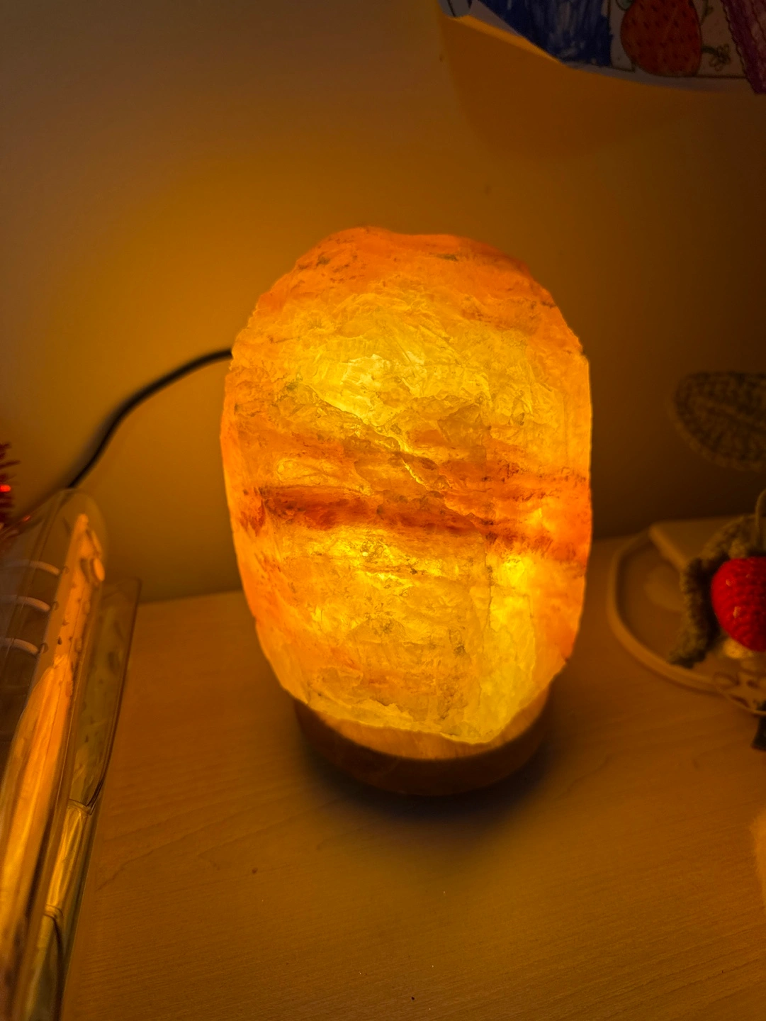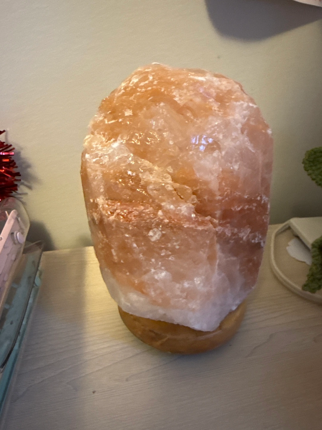 Himalayan pink salt lamp. Natural crystal. Touch control. Dimmable. USB powered. Neem wood base. LED bulb. Handcrafted in Pakistan. Took out of the box to test and it works great. Smoke and Petfree Home. Serious Inquiries only. Pick up at Rosenthal.