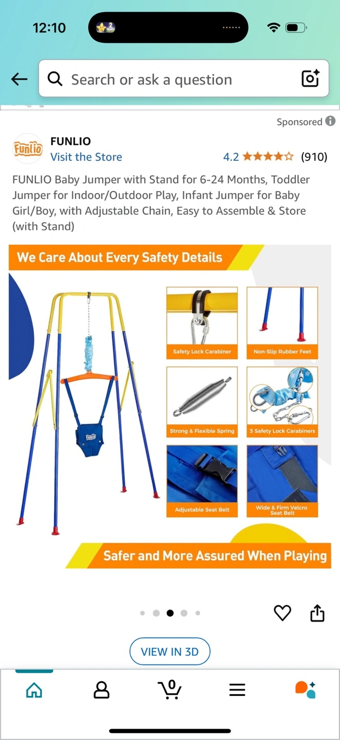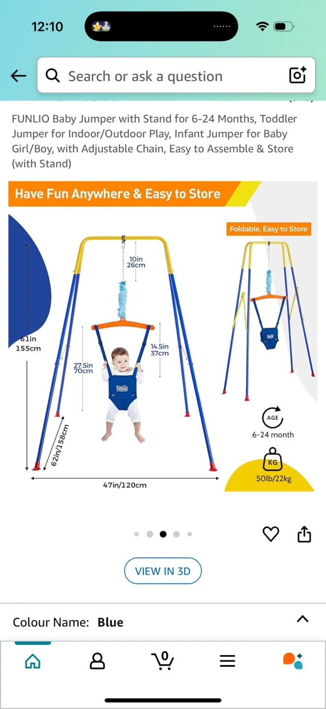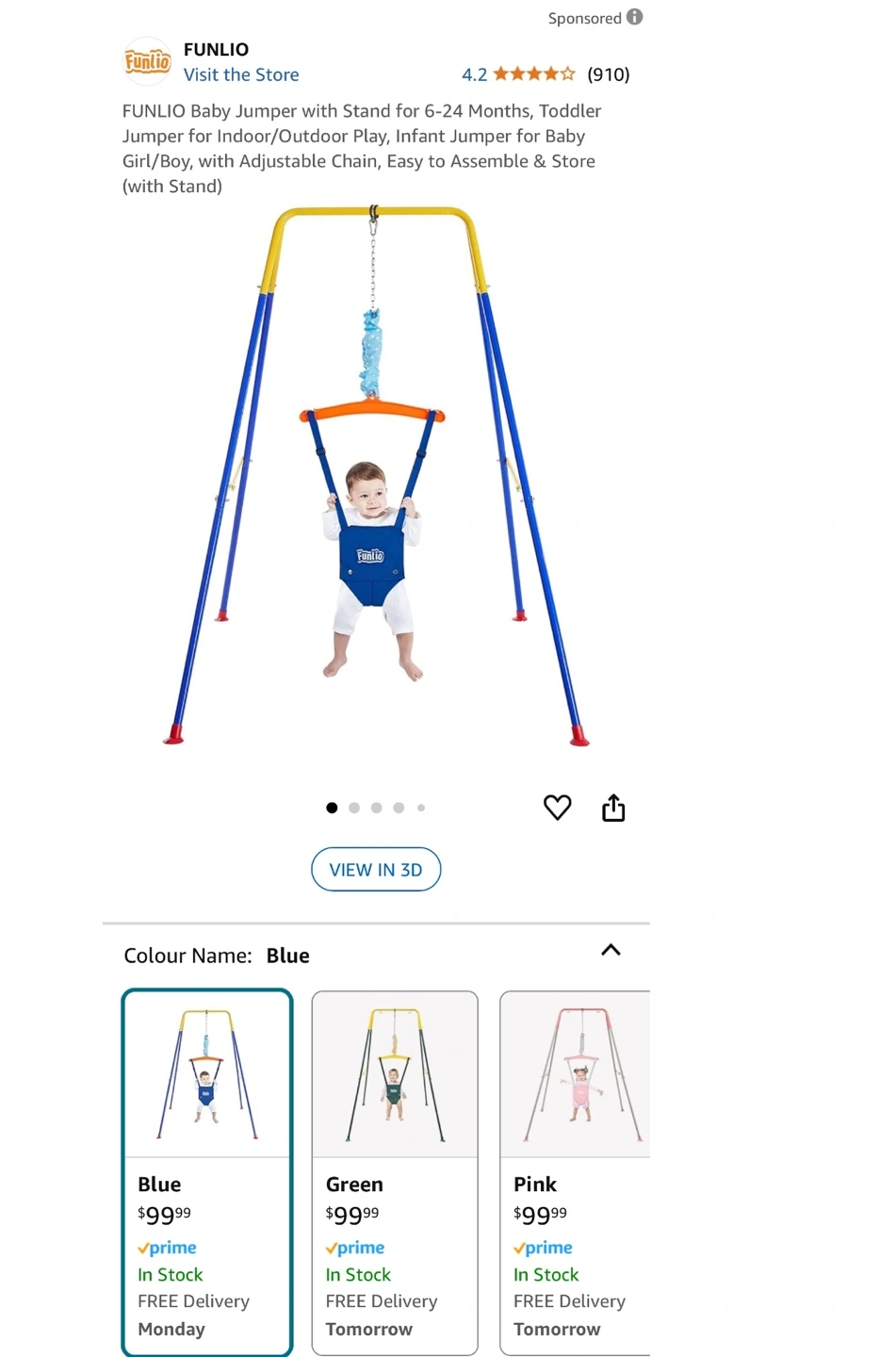 Baby Jumper suitable for indoor or outdoor use. Designed for children aged 6-24 months. Features adjustable chain, easy assembly, and foldable design for convenient storage. Includes safety features like safety lock carabiners and non-slip rubber feet.
