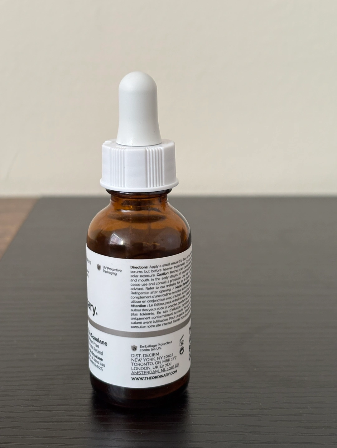 The Ordinary 0.2% pure retinol in squalane suspension in UV protective 30ml glass dropper. Almost full (about 4/5 of bottle). Mild retinol serum that targets signs of skin aging, dryness, textural irregularities, and uneven skin tone. https://theordinary.com/en-ca/retinol-02-in-squalane-serum-100439.html Cash only. Pick up at RBC Bathurst and Sheppard. I’m available to answer any questions :)