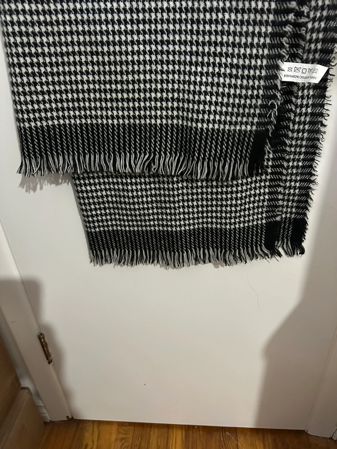 Large, soft scarf. Black and white houndstooth pattern. Fringed edges. Great for fall and winter. Worn a couple times, no rips or loose threads. Smoke free home.