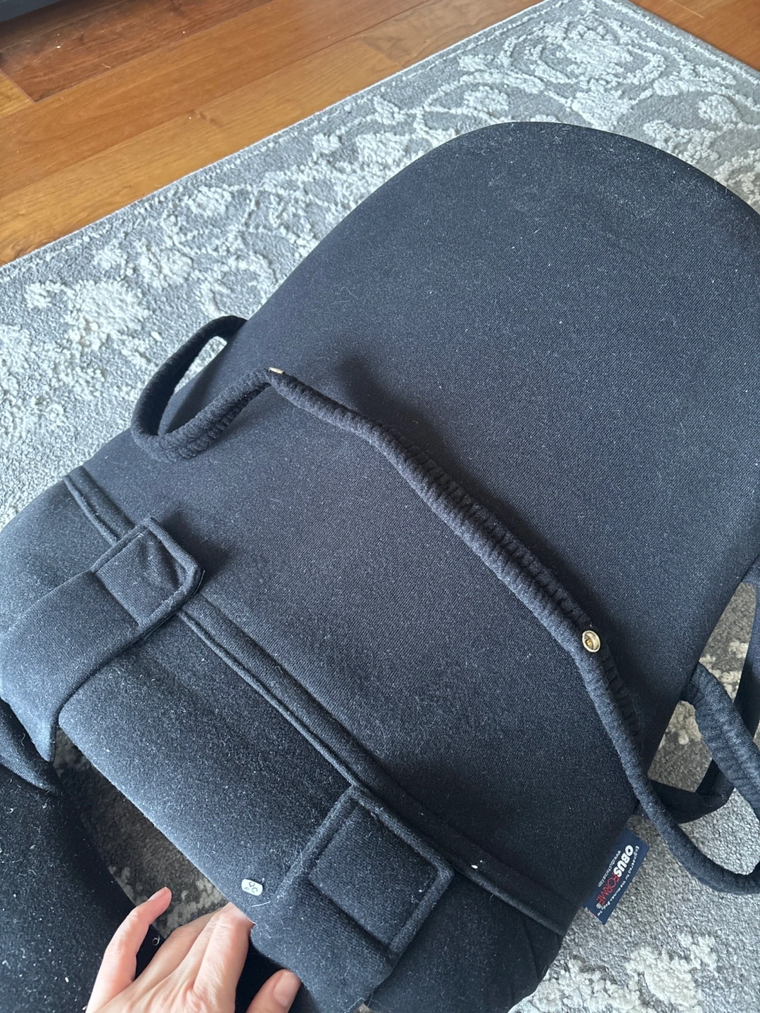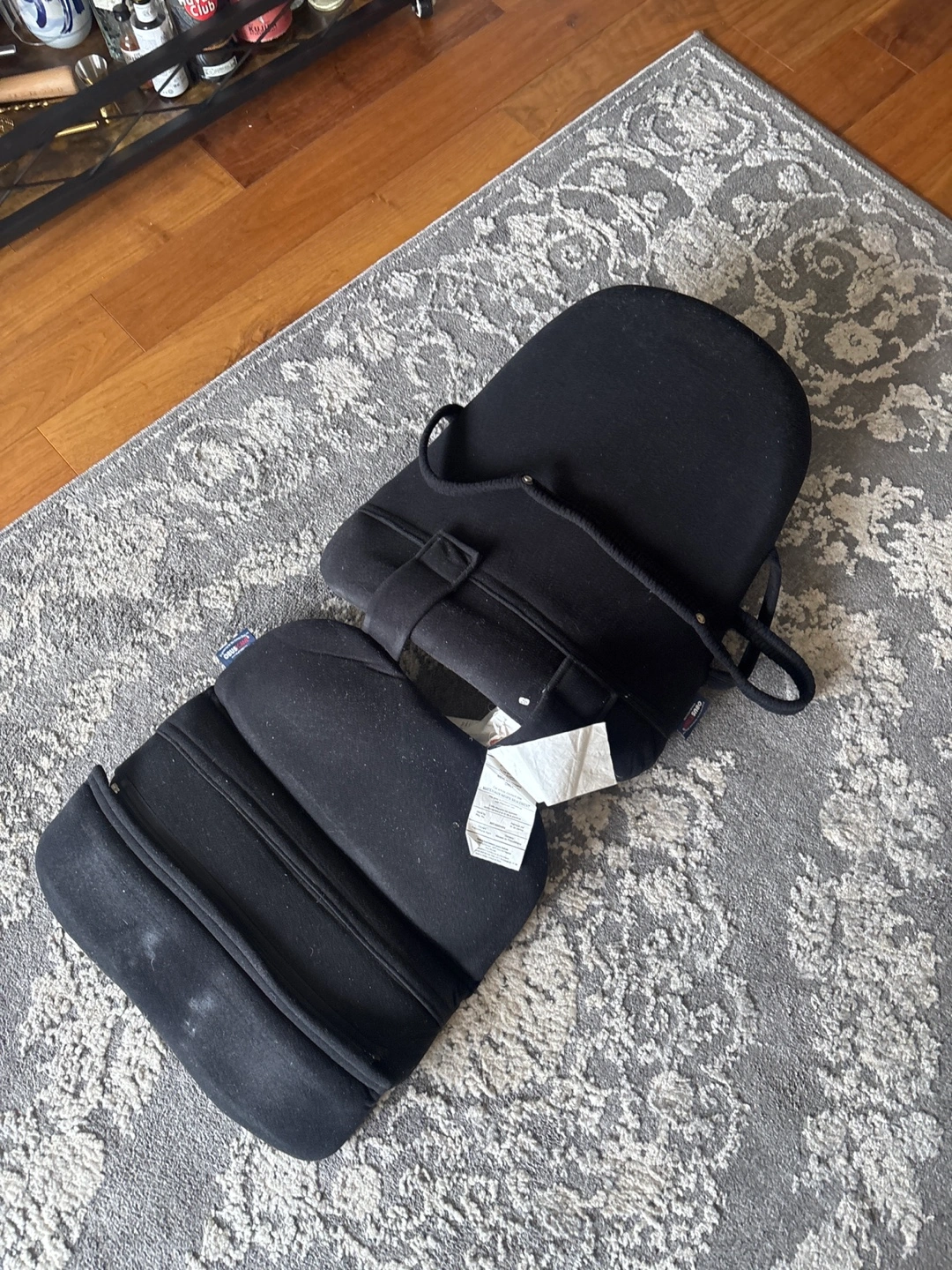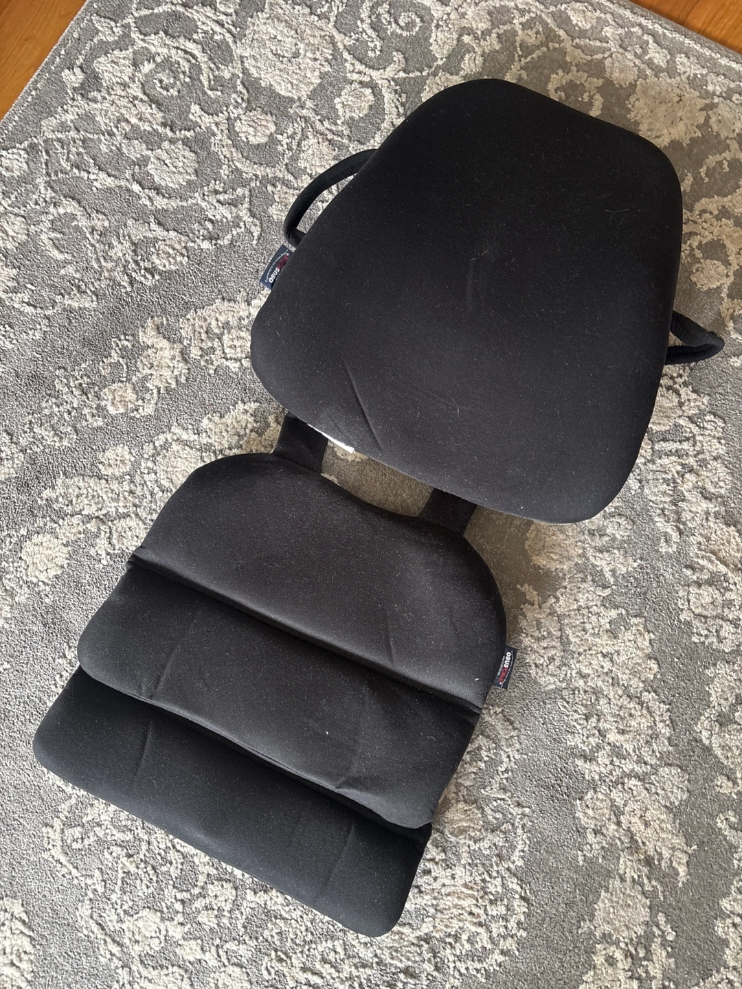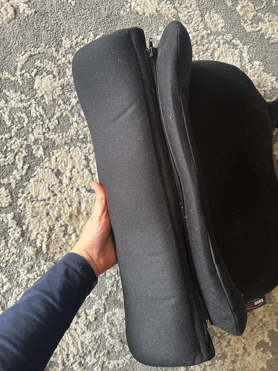 Black seat and back cushions. Attachable straps. Excellent for posture support. Used condition.
