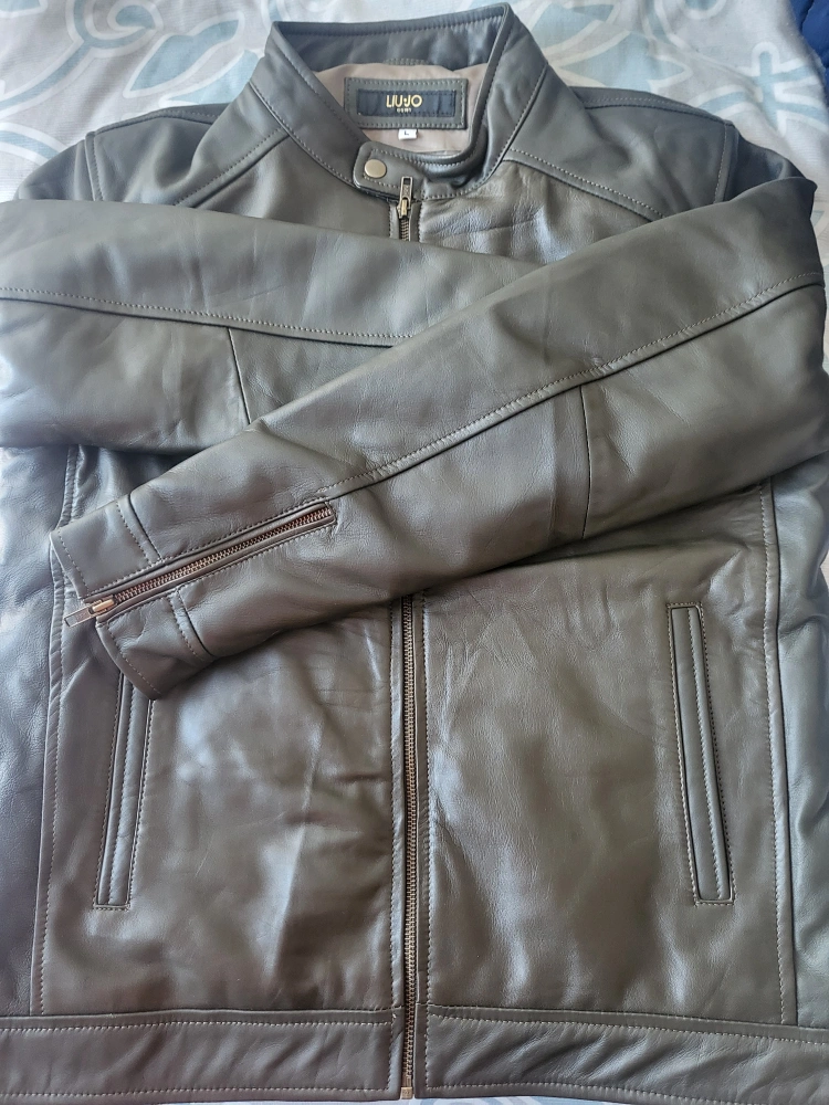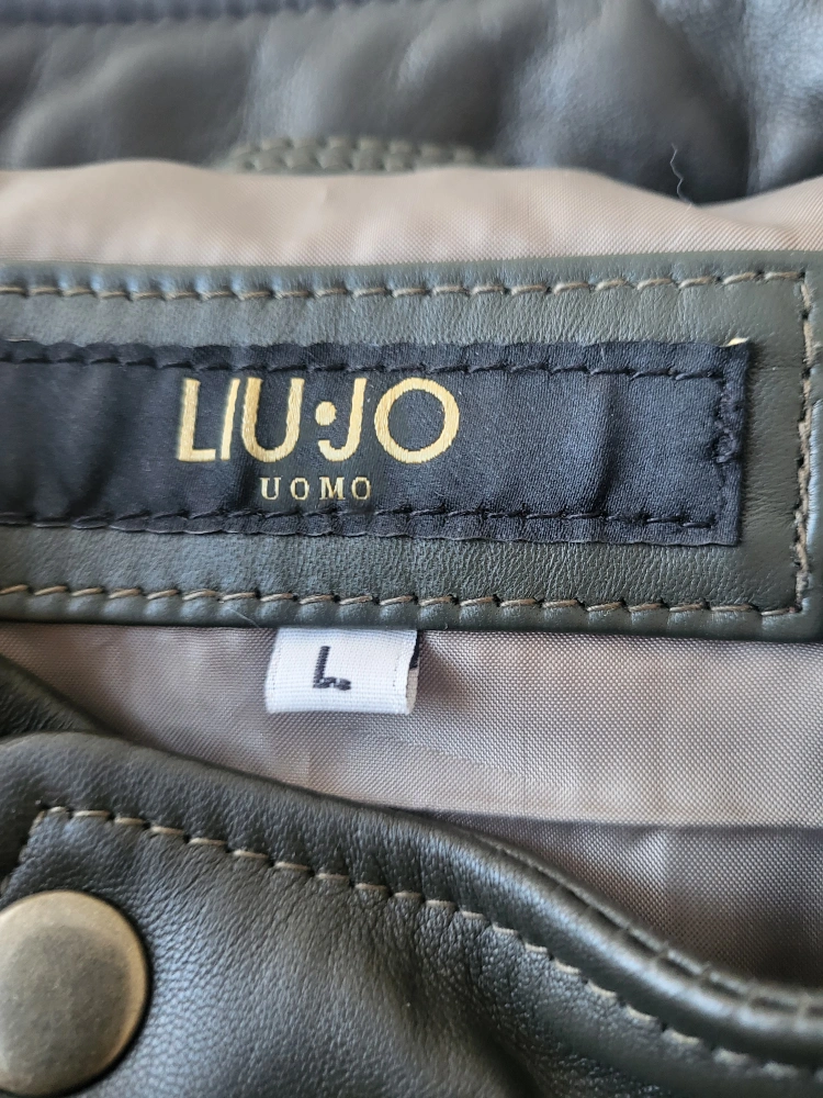 Green leather jacket. Size large. Full zip closure. Multiple pockets. New without tags