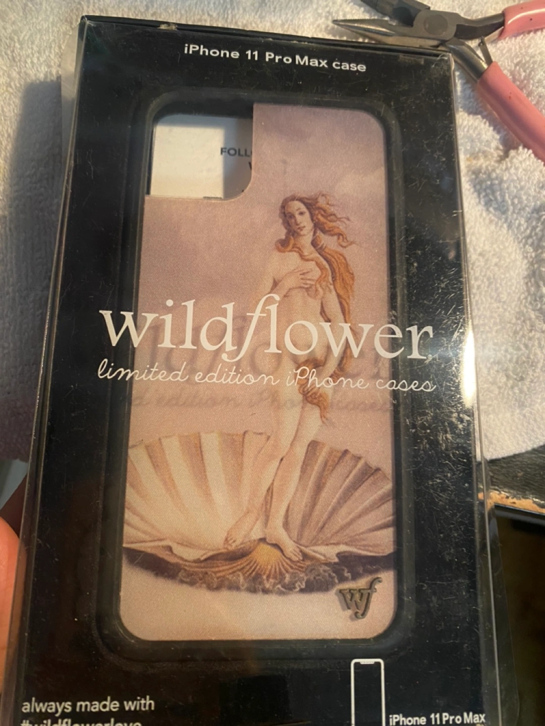 Brand new, limited edition Wildflower iPhone 11 Pro Max case. Features a beautiful Venus artwork. Comes in original packaging. $44.00 CAD, selling for half!