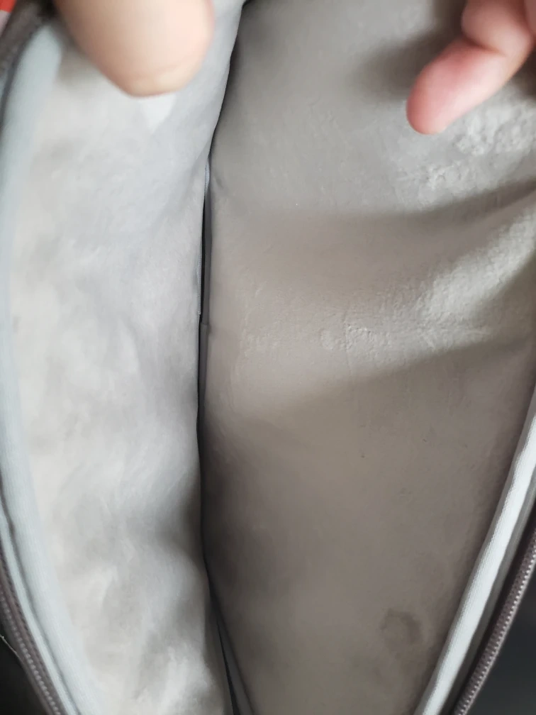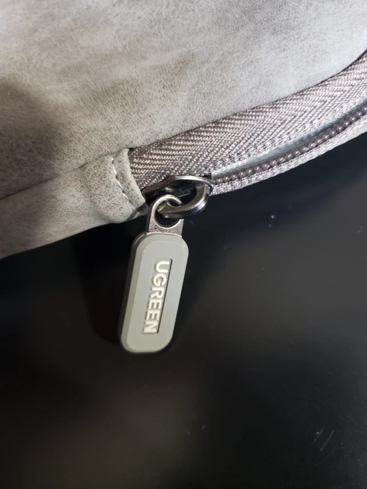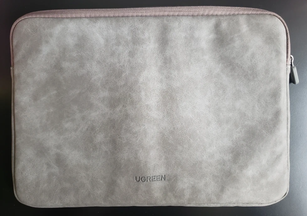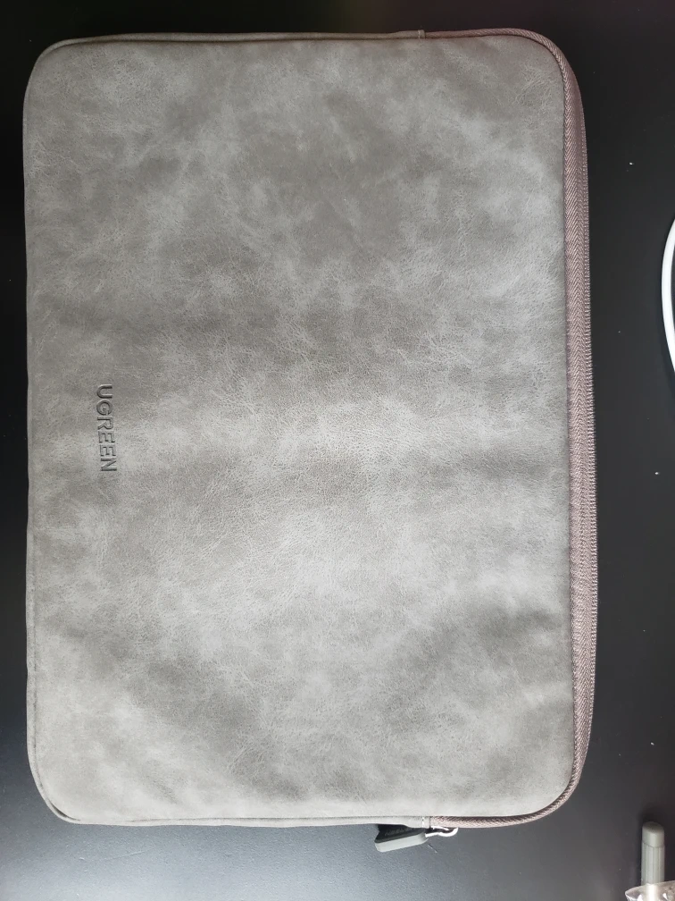 Grey laptop sleeve. Soft interior. Zipper closure. Good condition.