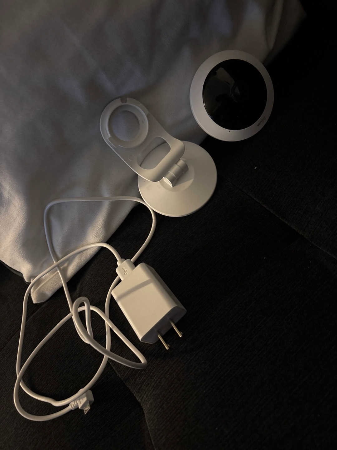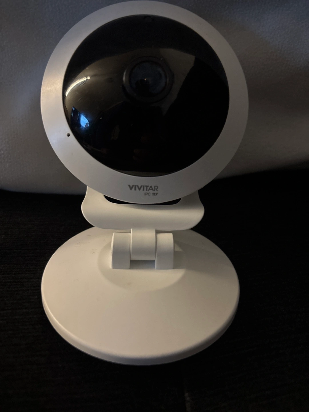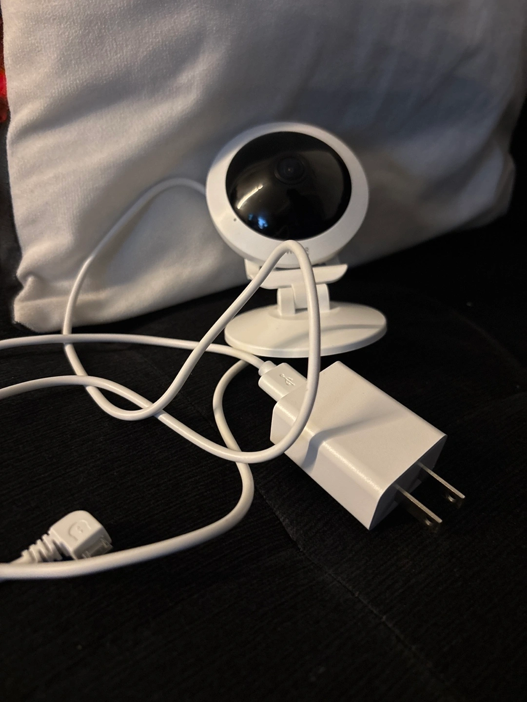 Wireless IP camera. Includes stand and power adapter. Great for home security or baby monitoring. White.