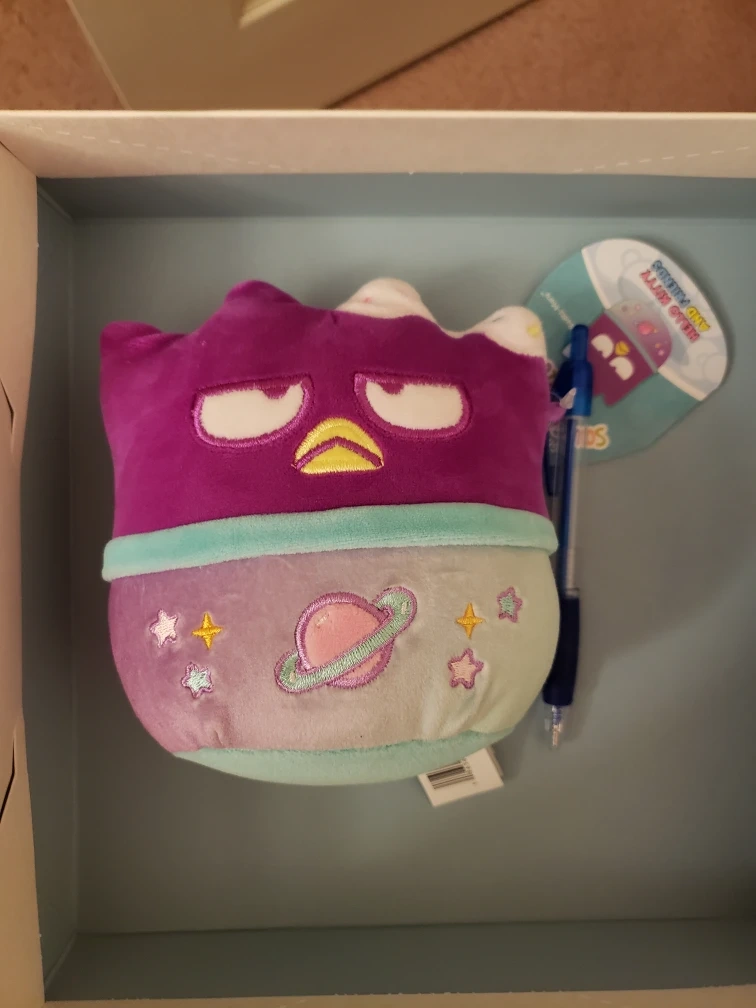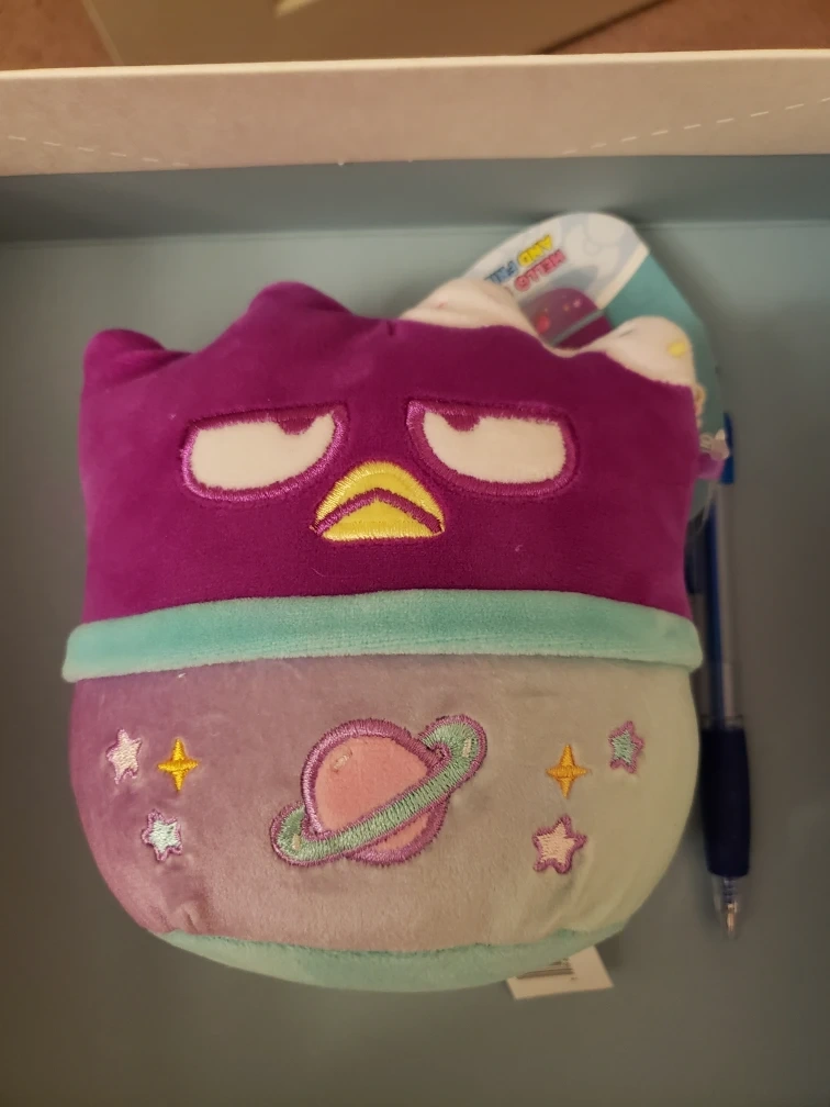 Adorable purple Badtz-Maru Squishmallow. Space theme design. Comes with original tags