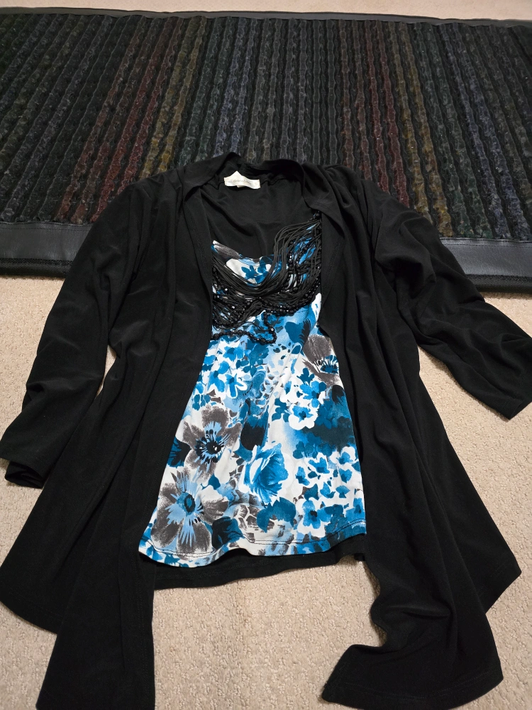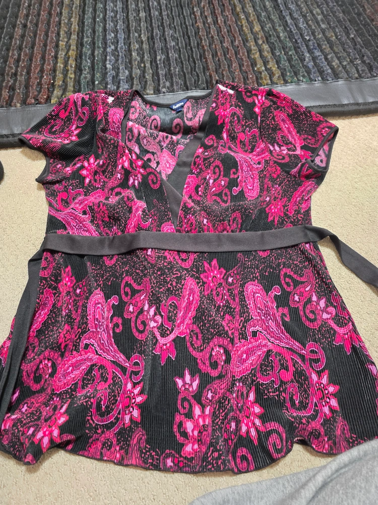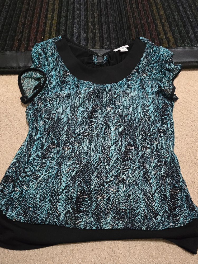 Bundle includes tops, cardigans, sweaters, etc Various colours and patterns. Sizes med large, all in good to excellent condition. lot of tops for office work or casual.