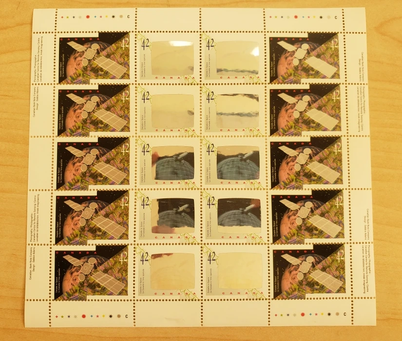 Full sheet of 20 unused Canadian postage stamps. Features the ANIK E1 satellite. Issued in 1993. Great for collectors.