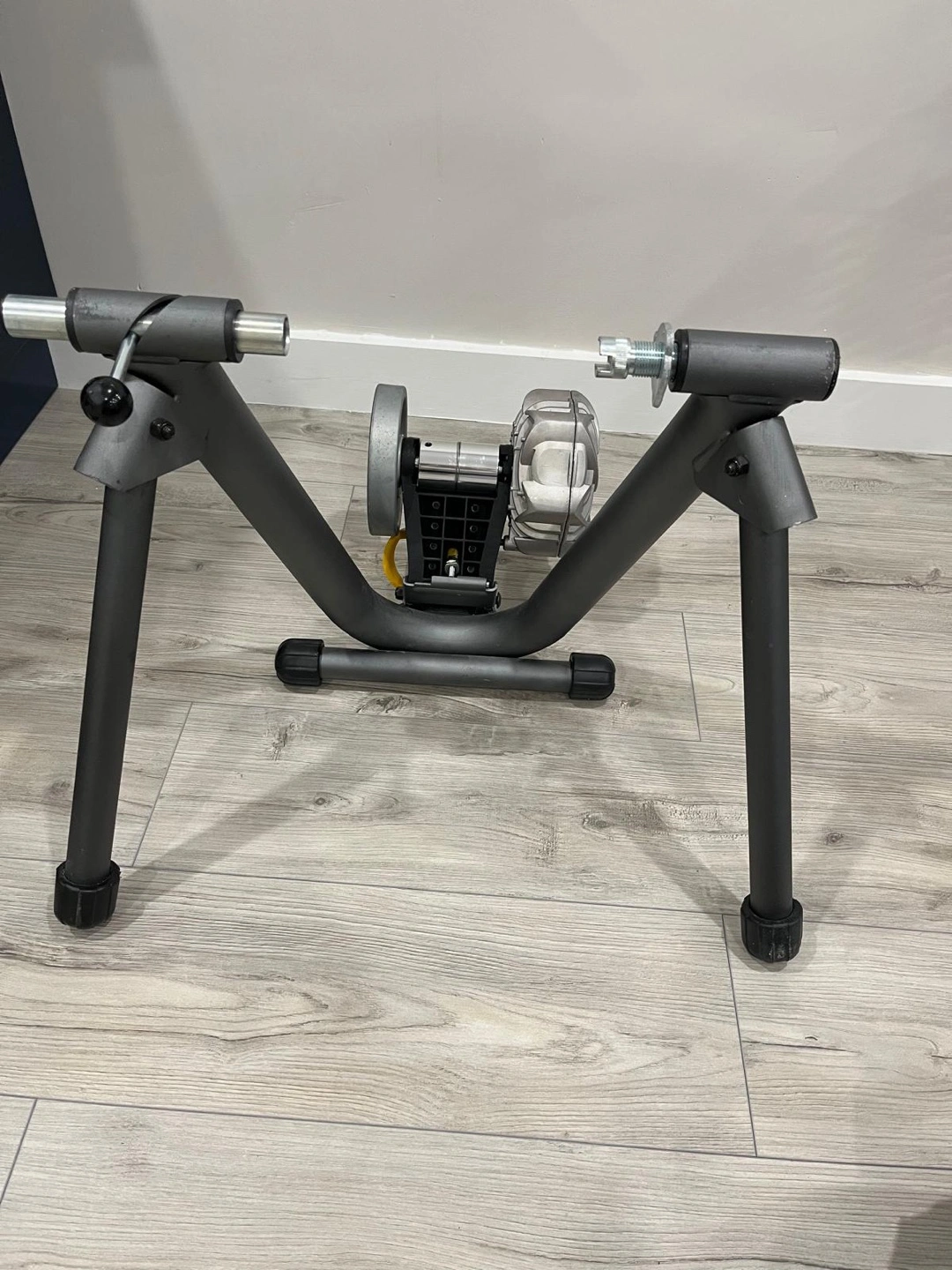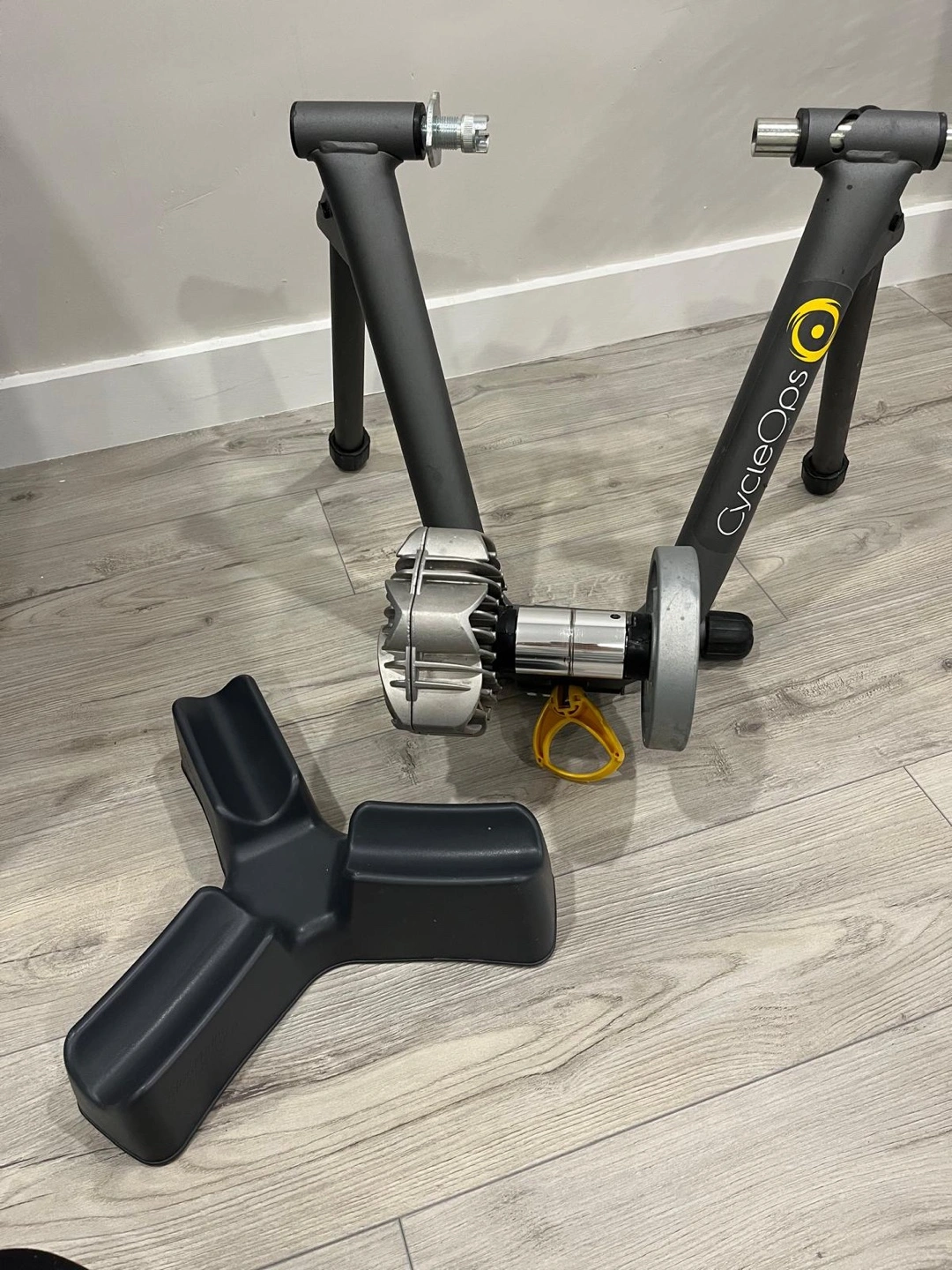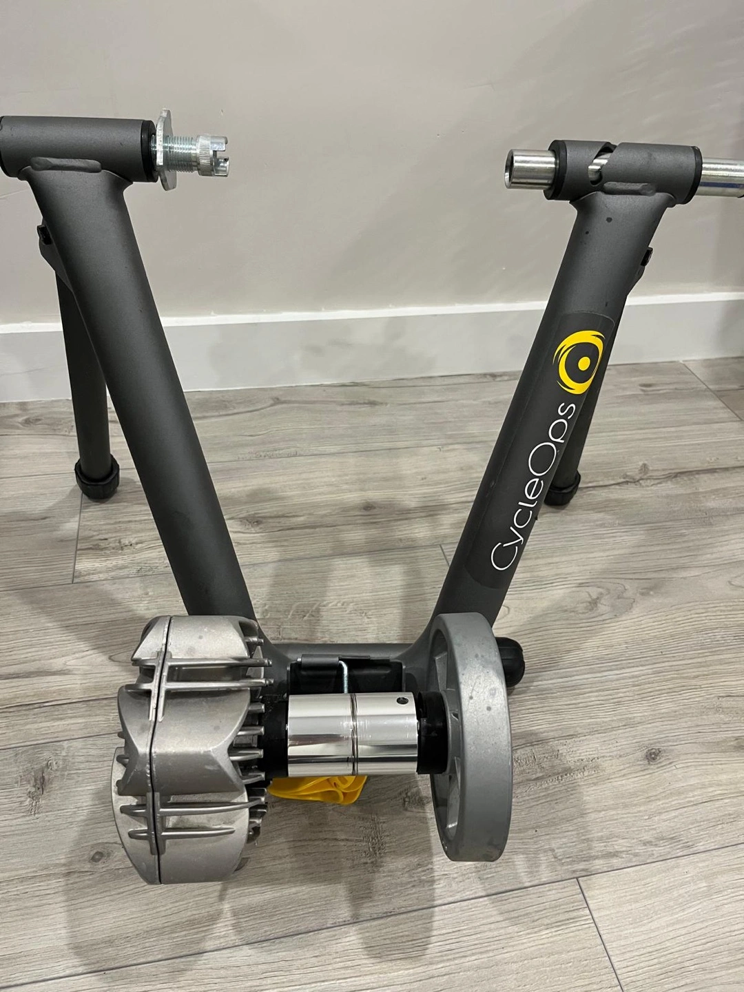 CycleOps Fluid2 bike trainer. Great for indoor cycling. Includes trainer and support stand. Never used, just assembled and stored away.