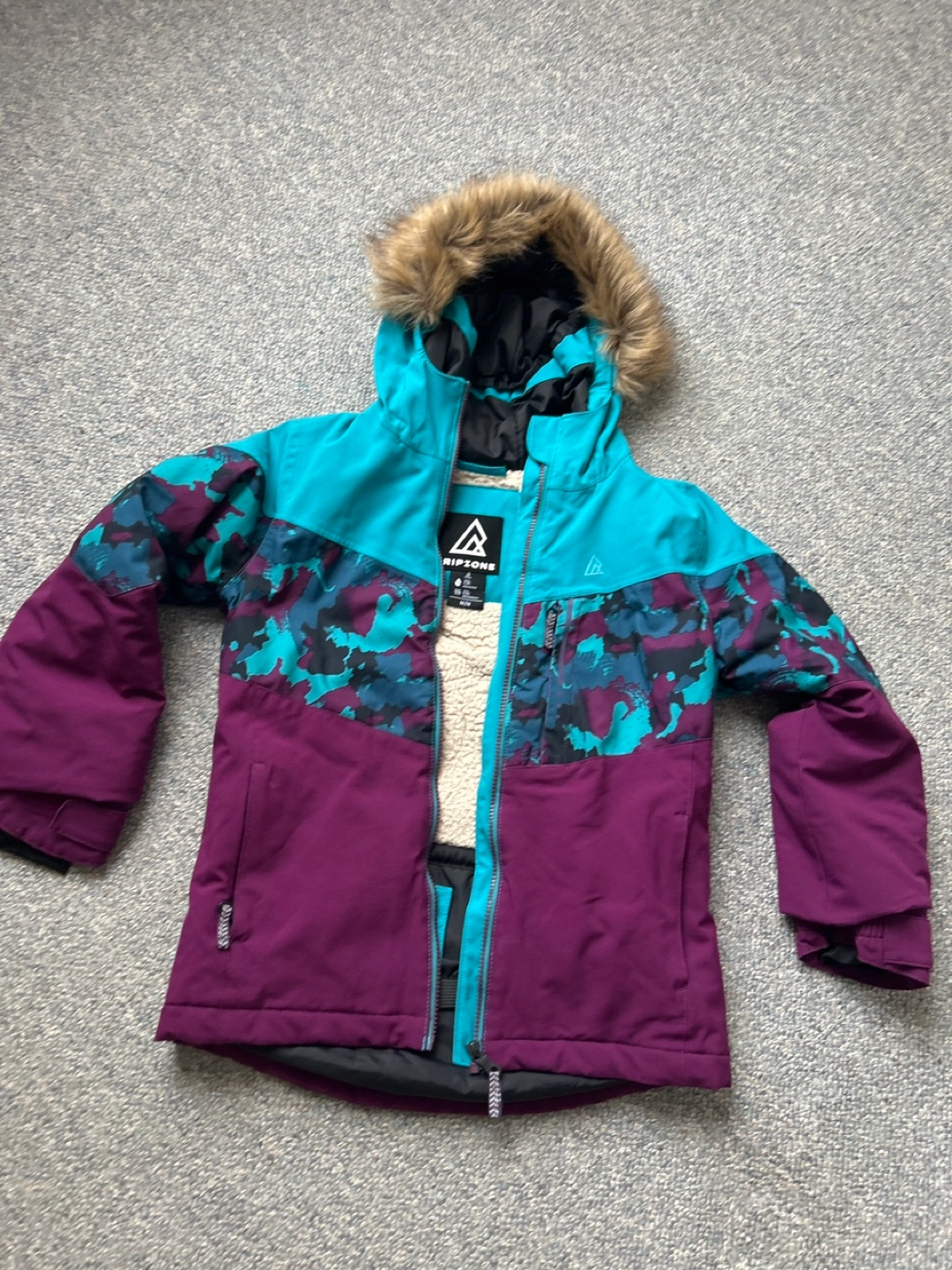 Girls' winter jacket. Size medium Purple and teal .Great for snow play!