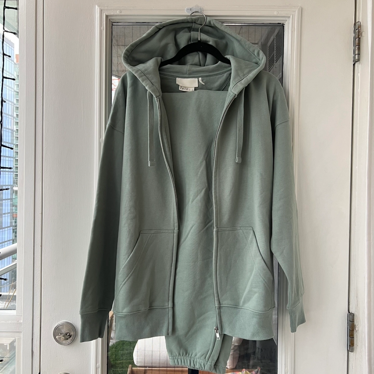 Blank staples Matching sage green zip-up hoodie and joggers. High quality soft, comfortable fabric. Relaxed fit. Perfect for lounging or running errands. CONDITION: LIKE NEW ( been in closet don’t wear) *small pen mark on left arm ( reduced price than original asking price) SIZE: ZIP UP HOODIE : MENS SMALL JOGGERS: MENS XS BOTH: $50 ZIP UP ONLY : $30 ( originally $50) JOGGERS ONLY : $30 ** if listing is still up the item is available ALL SALES FINAL SERIOUS INQUIRES ONLY PLEASE :) PICKUP ONLY - PRIORITY TO QUICK PICKUP AND/OR BUNDLES LOCATION: DOWNTOWN ( RICHMOND/ GEORGE ST) Check my listings for more and follow for new items almost DAILY😀!!!