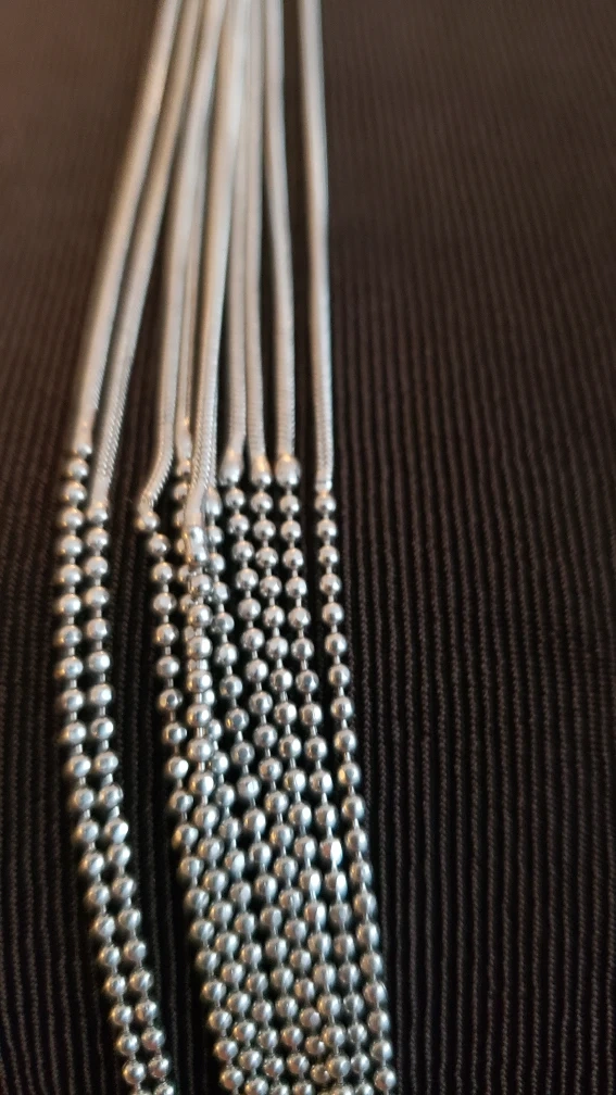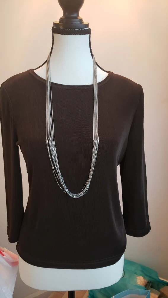 Long silver metal necklace. Multiple strands of small beads. Elegant and stylish. Perfect for layering or wearing alone. Pick up only. Cash only.