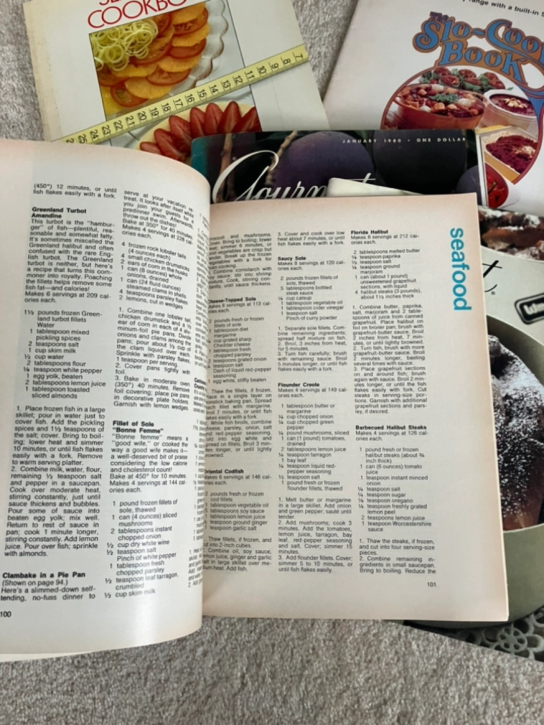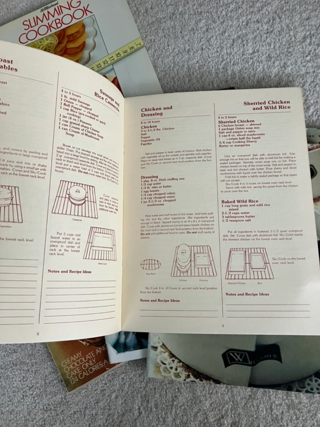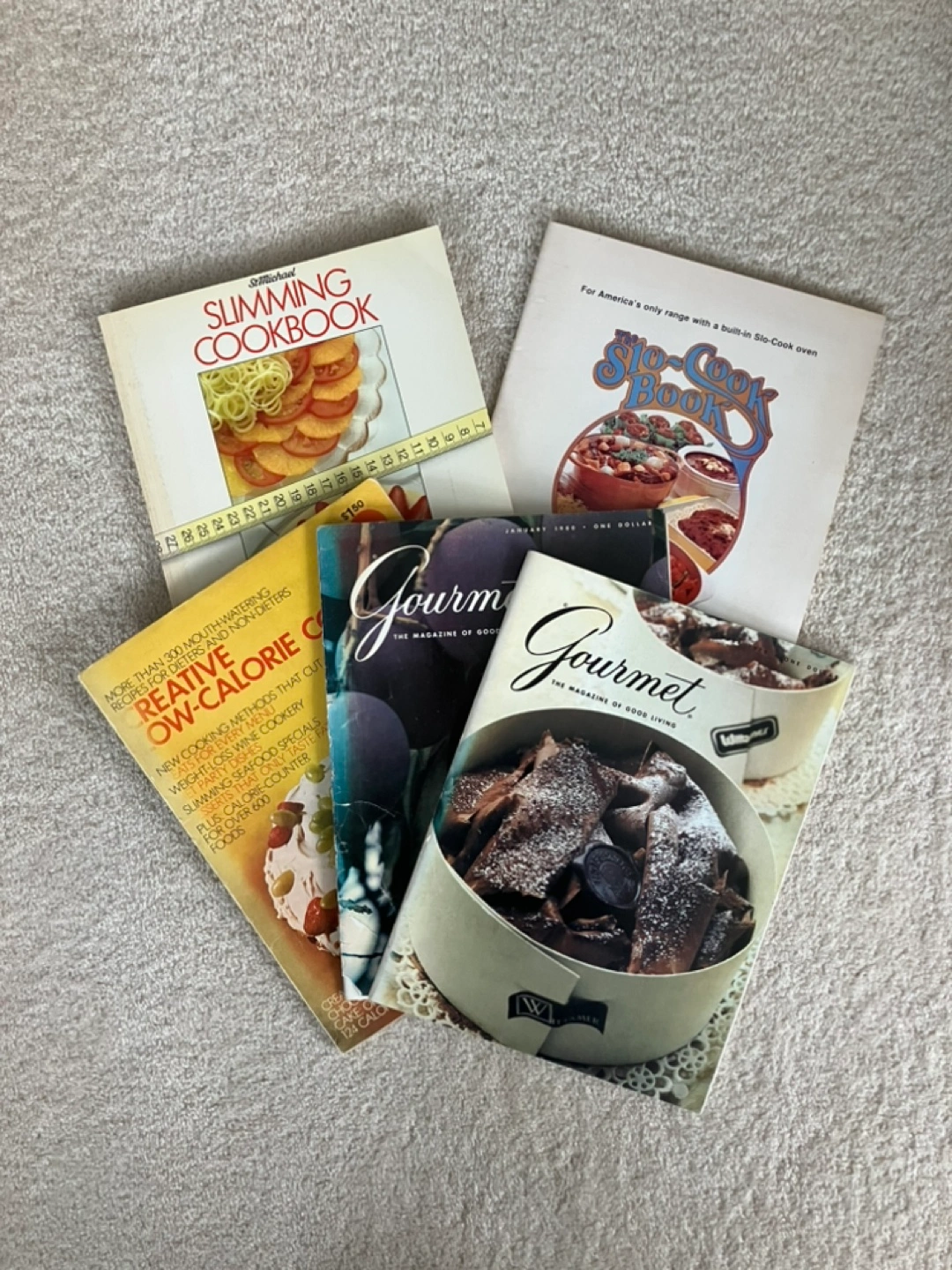Lot of vintage cookbooks and magazines. Includes recipes for slow cookers and dishes with beautiful photography. Great for collectors or home cooks.