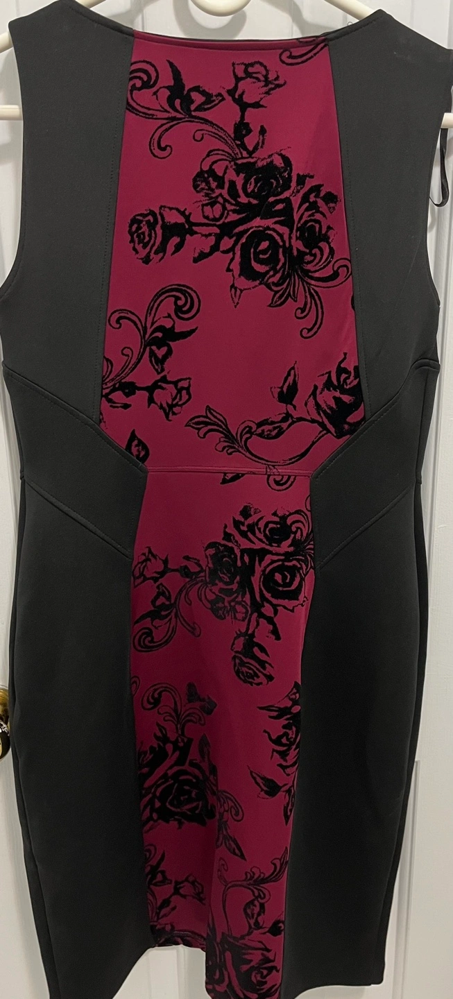 Elegant sleeveless dress. Black and burgundy colour block design. Floral pattern. Size 10. Pick up from Maple Vaughan. Major intersection keele and Rutherford or downtown Toronto