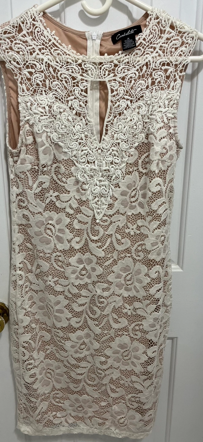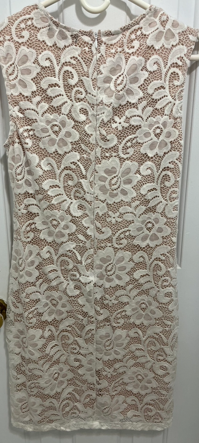 Beautiful white lace dress. Size medium. Sleeveless. Keyhole neckline. Fully lined. Back zipper. Pick up from Maple Vaughan. Major intersection keele and Rutherford or downtown Toronto