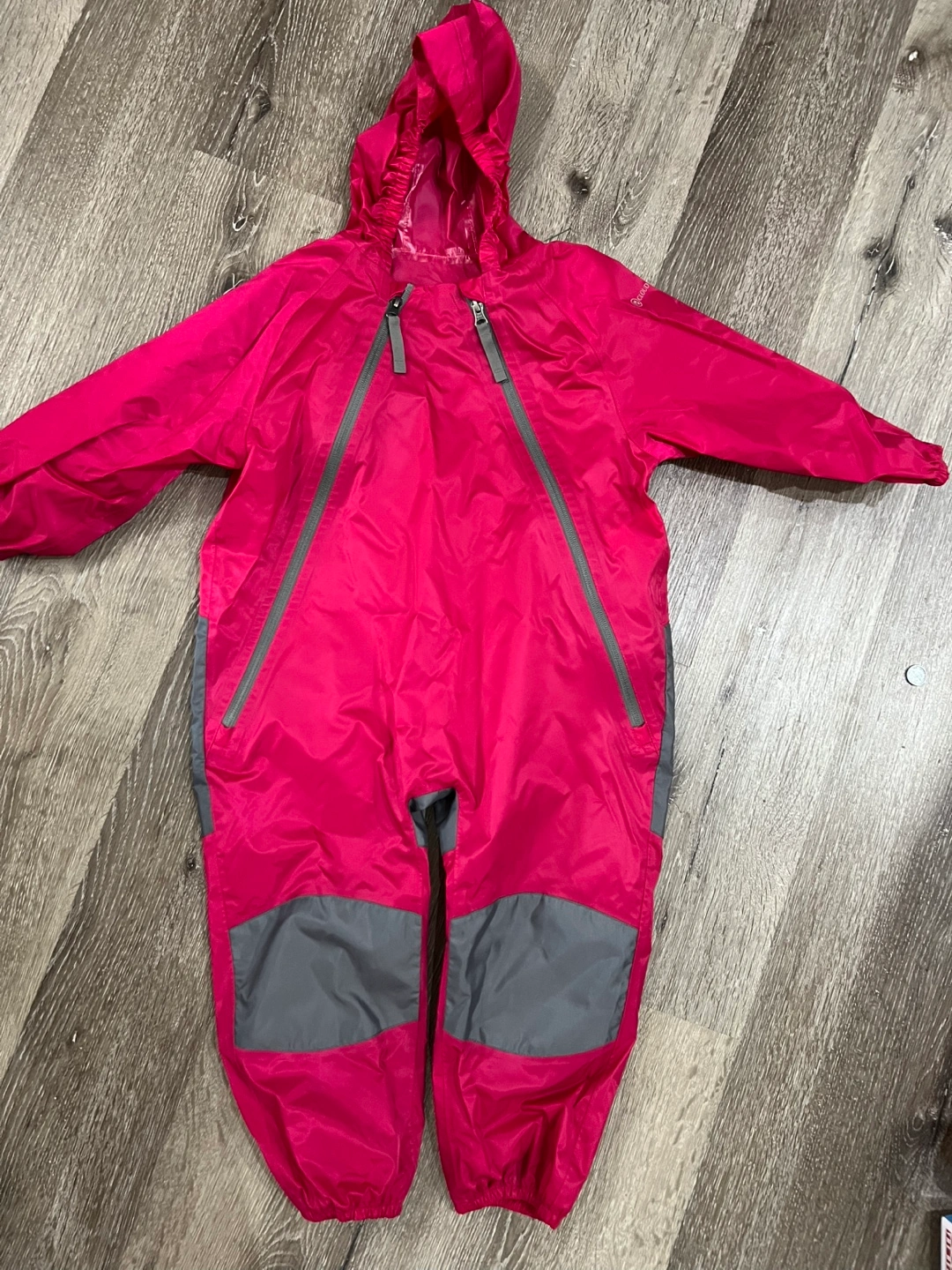 Adorable pink rainsuit. Size 4T. Full coverage, hooded design. Grey accents. Great for puddle jumping! My daughter doesn’t like to wear it