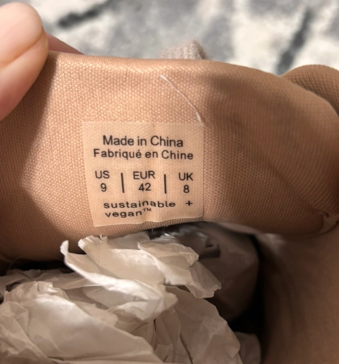 Pair of beige vegan suede sneakers. Size US 9, EUR 42, UK 8.