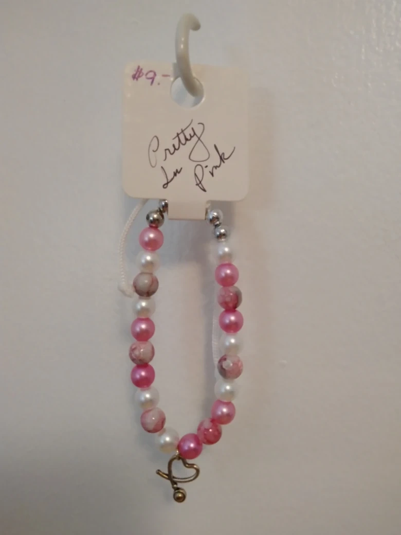 Handmade Pretty in Pink beaded bracelet with heart charm. Great gift for your Valentine! $7. Pick up near GM Oshawa after 4 pm.