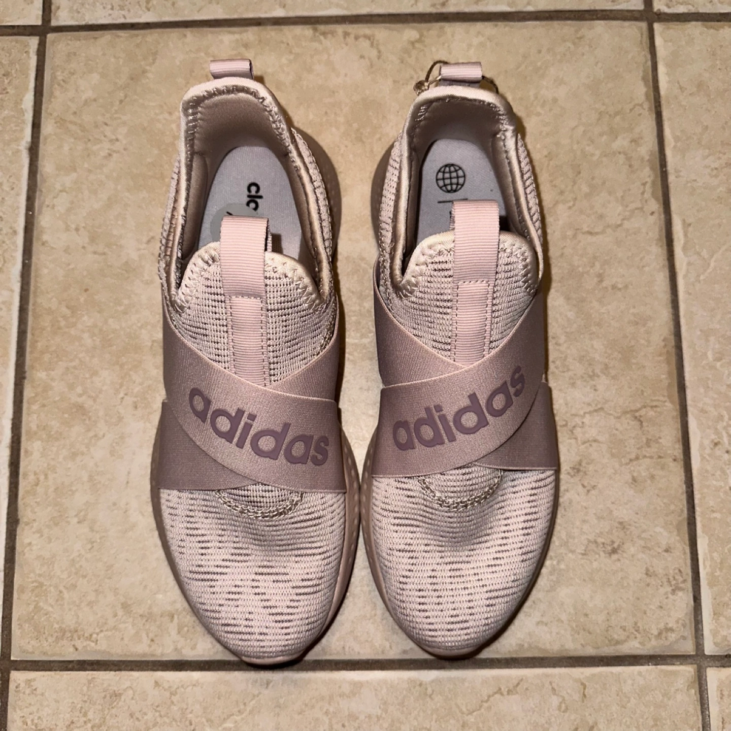Women's Adidas slip-on sneakers. Dusty rose colour. Great for everyday wear. Comfortable and stylish. - cloud foam comfort - dusty rose pink colour - women’s 6.5 - very light weight - new never worn