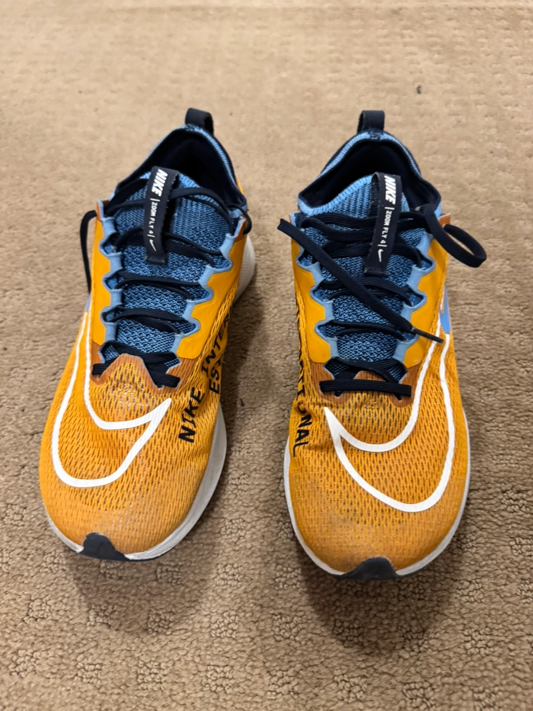 Lightly used Nike running shoes. Yellow and blue colourway. Est. 1980 and Nike International printed on shoe.
