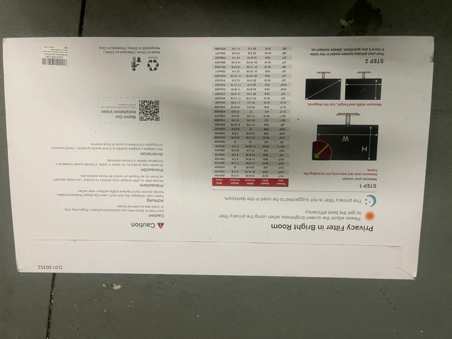 New privacy screen protector. Prevents others from viewing your screen. Various sizes available. Easy installation. Protects against UV and glare.