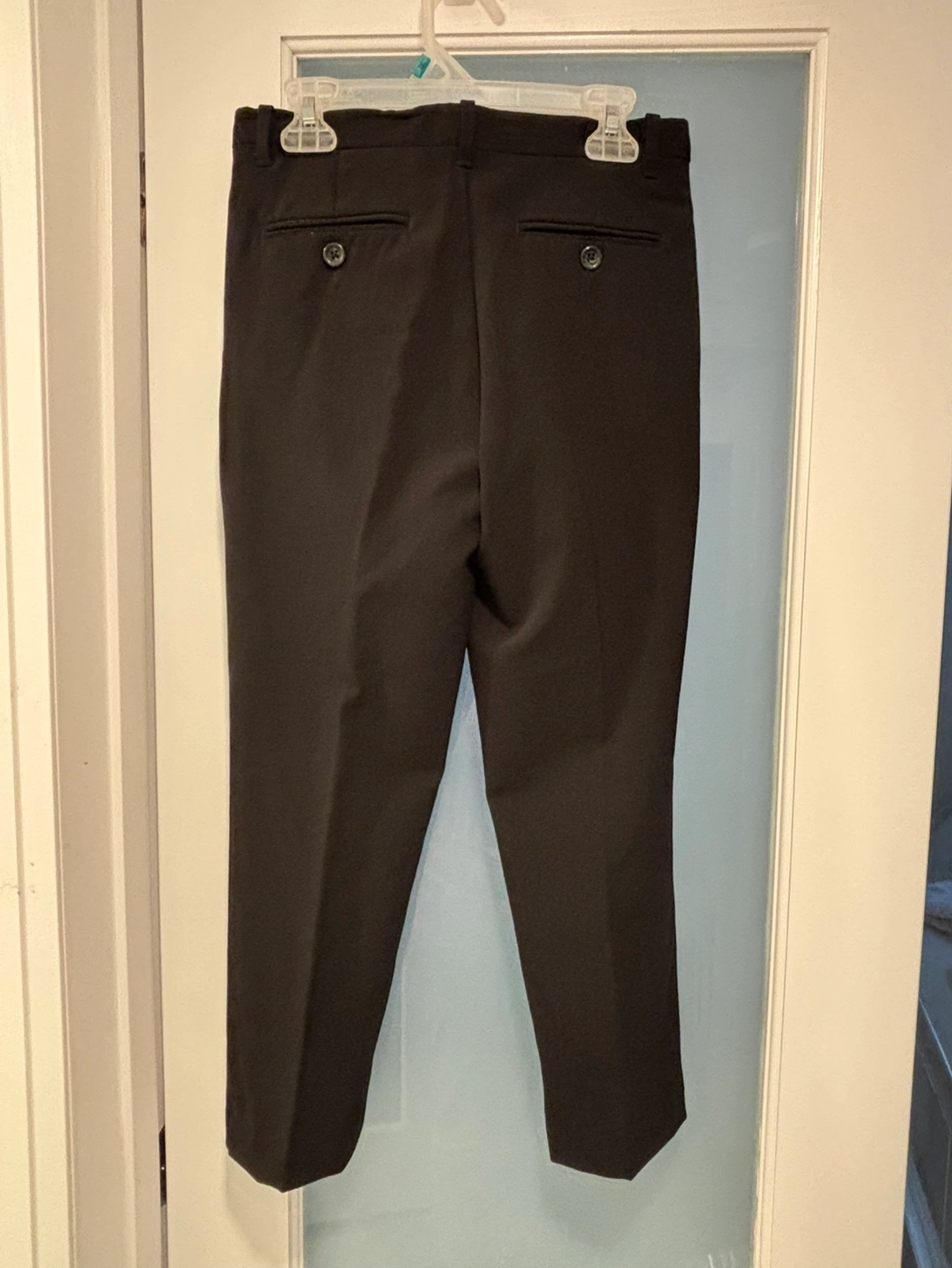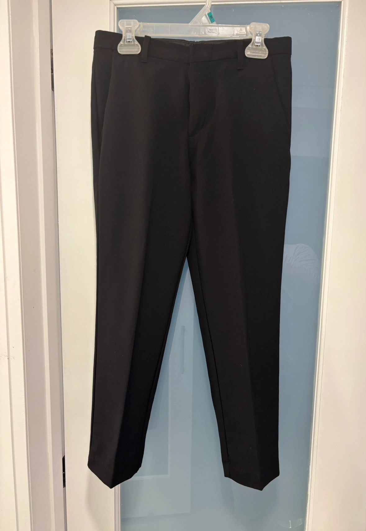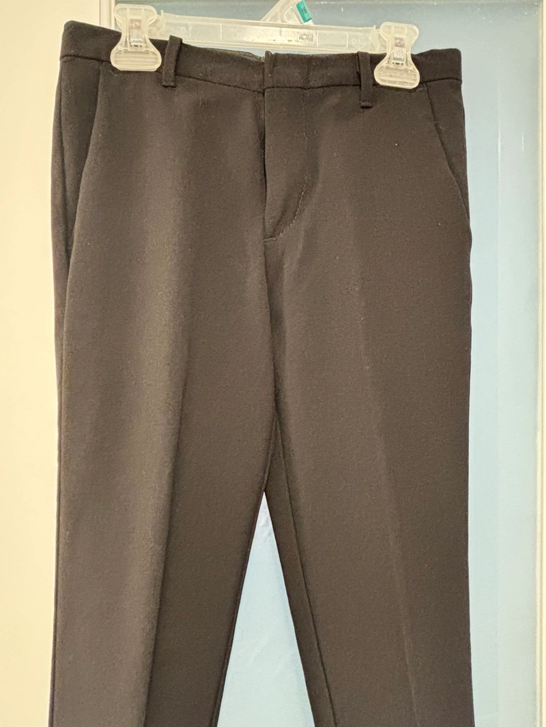 Boy’s black dress pants. Size 8 regular. Zipper with clip closure. Straight leg. Excellent condition. Waist approx 27” Inseam approx 21”