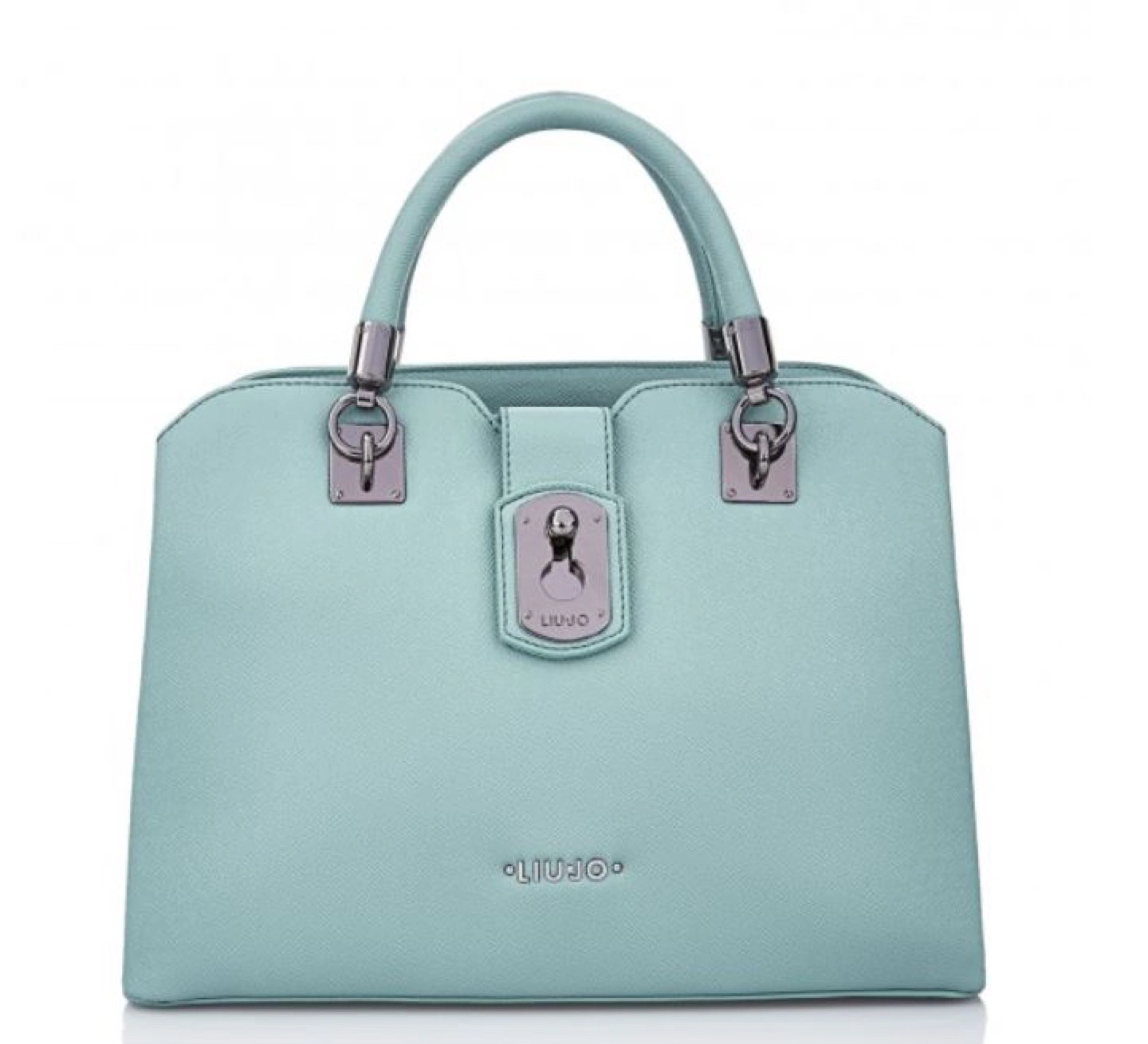 Beautiful light teal structured handbag. Top handles and silver toned hardware. Subtle branding. Perfect for everyday use.