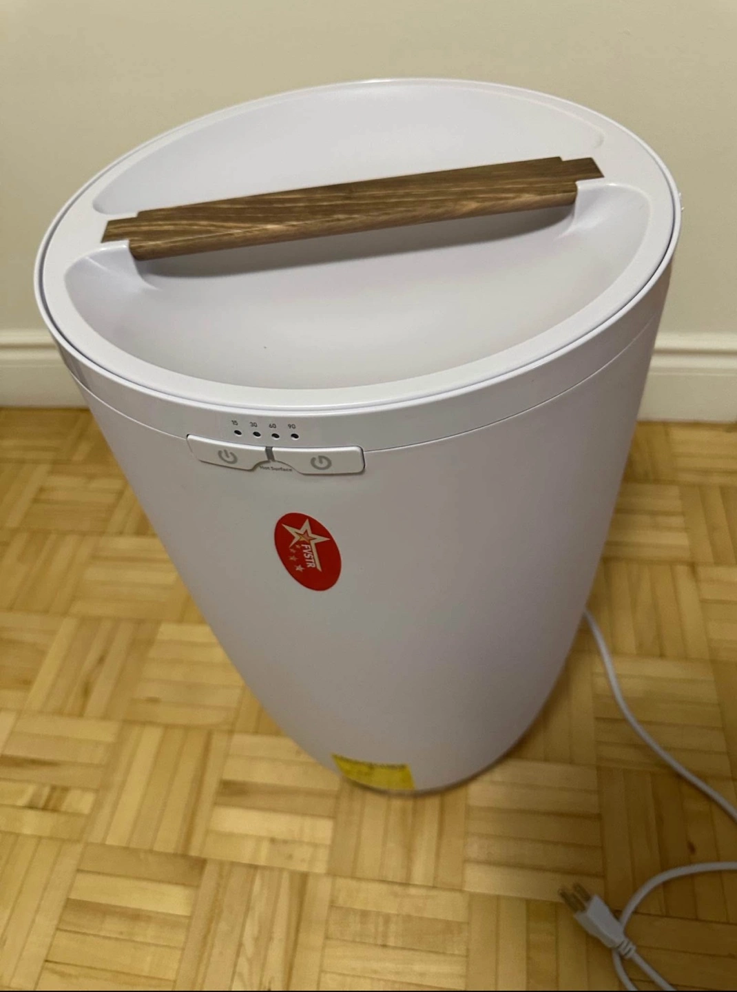 Accommodates up to two oversized bath sheets. Size: 12.4 x 12.4 x 21 and has a total capacity of 20L
