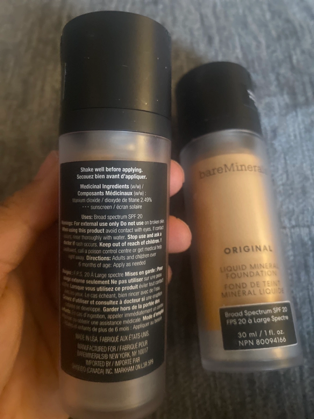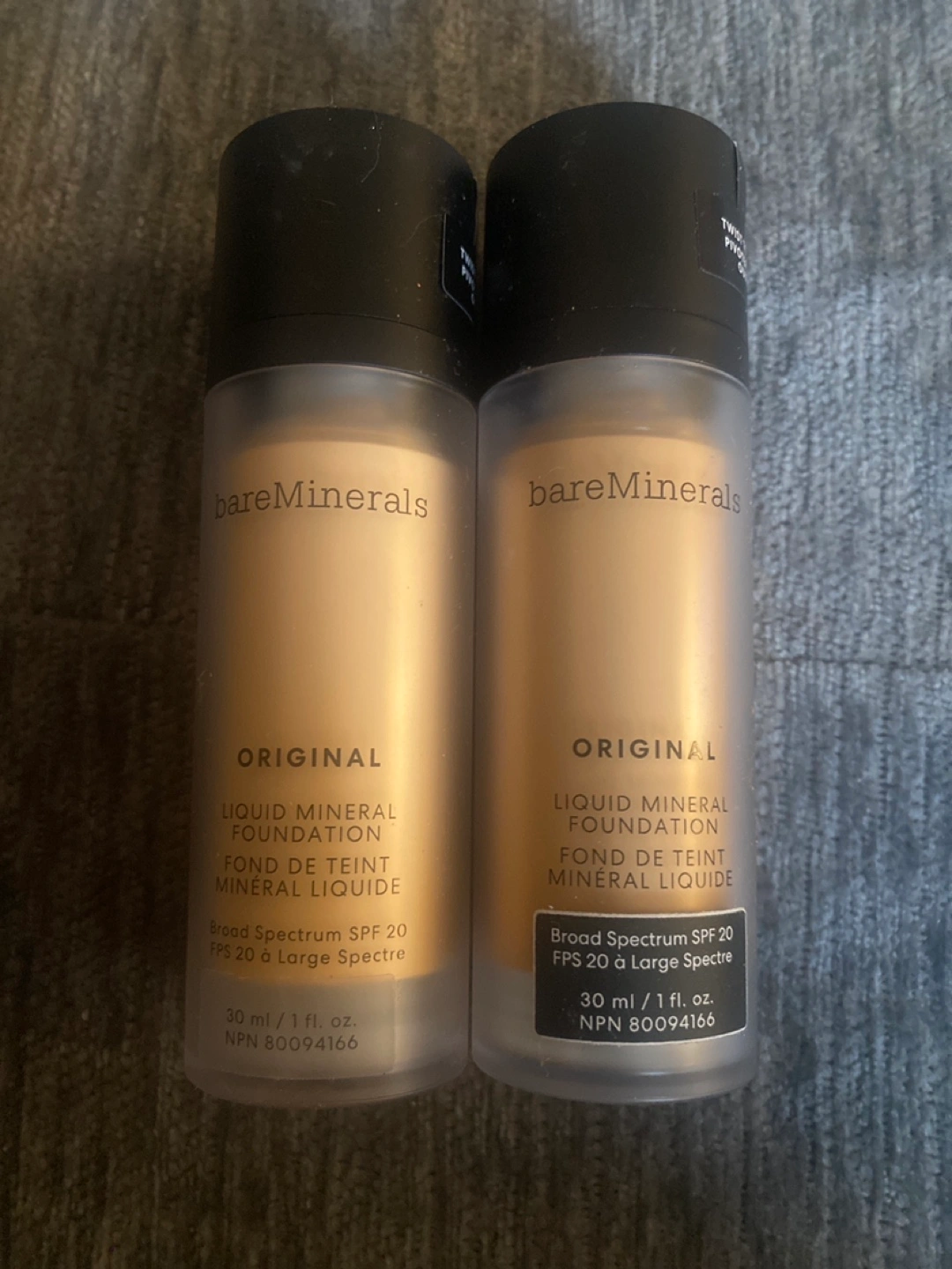 Two bottles of BareMinerals Original Liquid Mineral Foundation. SPF 20. 30 ml each. New. $10 each or both for $15 pick up location Royal York and Mimico