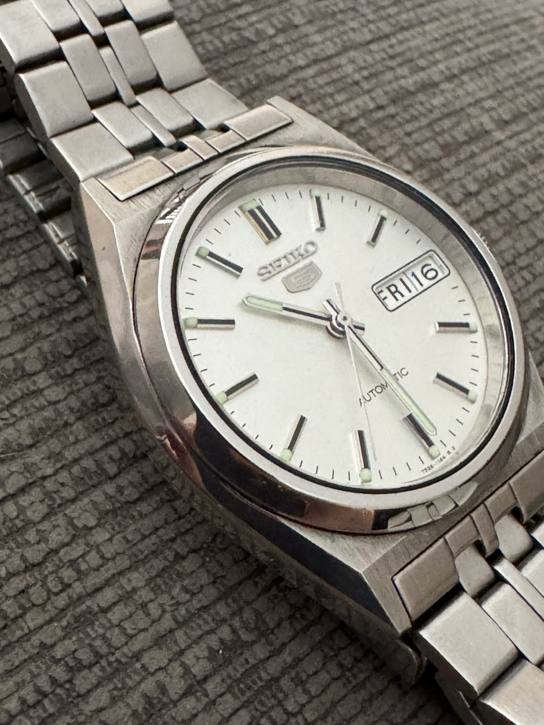 PLEASE READ DESCRIPTION FOR DETAILS AND SIZING BEFORE BUYING - Excellent condition, fully functional - 34mm across case size, bracelet fits up to 7.5” wrist - Silver dial - Automatic - Vintage Price is firm. Pickup Markham or downtown Toronto. Can ship at buyers expense. No holds without deposit, first come first served. If you like this watch, check out my other listings for similar watches! Buy multiple for a small discount