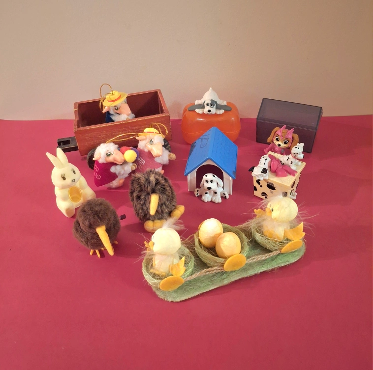 An assortment of cute, new and lightly used, small animal toys for just $2 - $3 each, or buy the whole lot for $15. These collectible toys are plush, plastic (PVC) and papier mache, and include dogs & kennels, kiwis, sheep & a wooden cart, a bunny, and chickens with eggs. Size: 1" - 3". Available for pick up near Celebration Square in Mississauga Square One. Payment: Cash or e-Transfer.