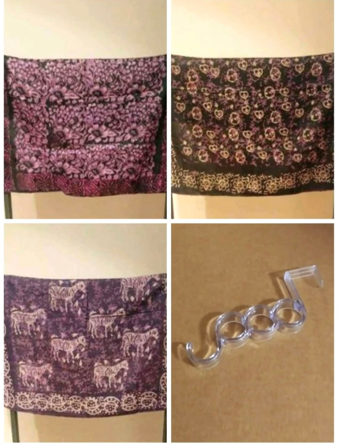A set of 3 beautiful, new, silky cotton scarves with a display hanger/holder for just $10, or buythemseparately for $3 each. The scarves come in a variety of prints and colours, and each scarf measures 30" x 30". The clear acrylic hanger/holder fits over the door. Items available for pick up near Celebration Square in Square One Mississauga. Payment: Cash or e-Transfer.
