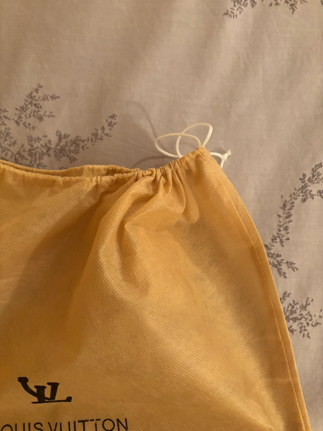 Beige dust bag. Drawstring closure on one side only. Small hole on the back of the bag. Has not been used just stored away with all the other dust bags I have. Price reflects small imperfection. From a smoke and pet free home. Pickup only in the St. Lawrence market area of downtown Toronto. Cash only.