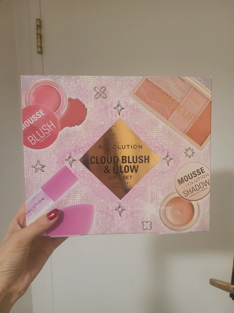 Makeup gift set. Includes mousse blush, cheek lift palette, mousse shadow, lip oil, blush brush and a sponge applicator. New and unused.
