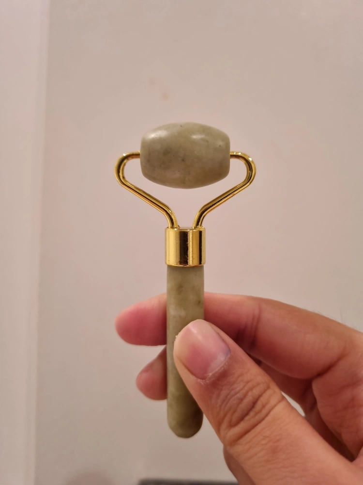 Cute mini green jade roller with gold accents. Perfect for skincare routine. Gently massages face and neck. Willing to give for free with any purchase from my page ๐