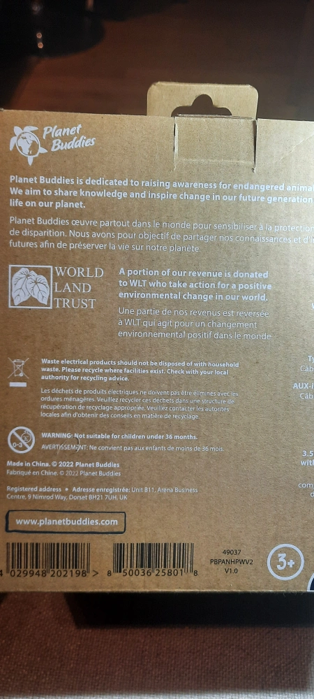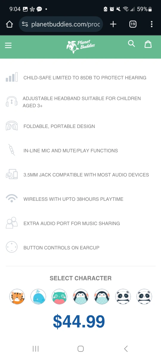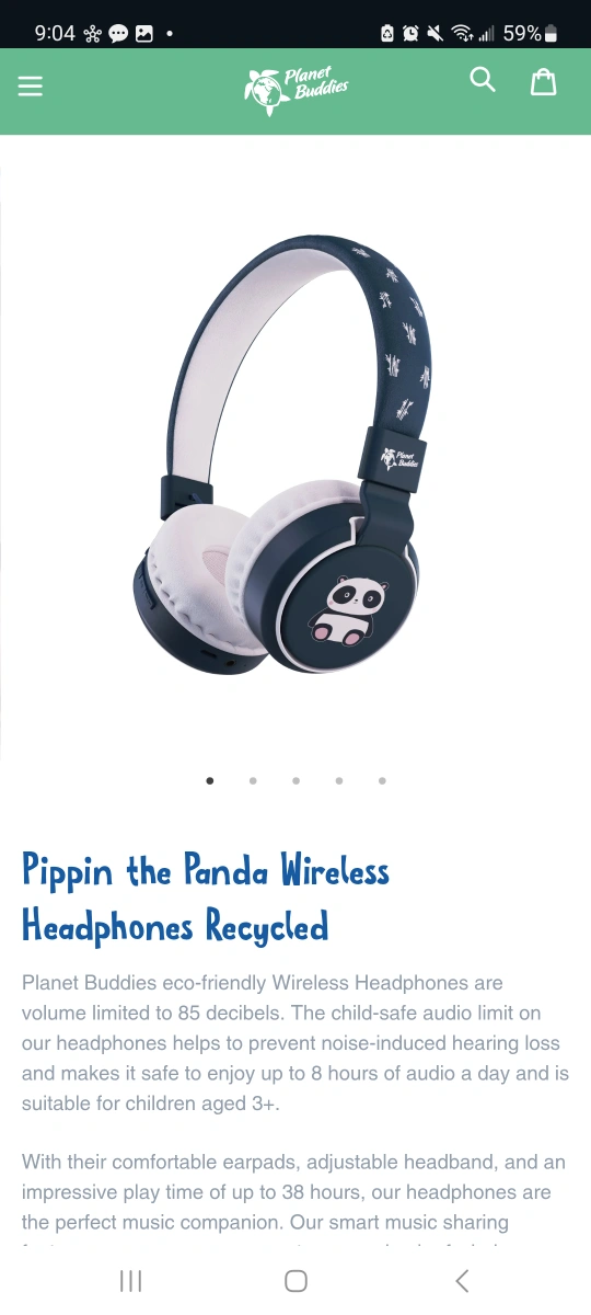 Like New Wireless headphones, child-safe volume limit. Up to 40 hours playtime. Foldable design. Adjustable headband. Features button controls on earcup. Includes in-line microphone and mute/play functions. Compatible with most audio devices via 3.5mm jack. Eco-friendly and partially recycled materials. Bought them for my God daughter and she used them a couple of times with her switch but has moved on. Retails for $45+ https://www.planetbuddies.com/products/pippin-the-panda-wireless-headphones-recycled