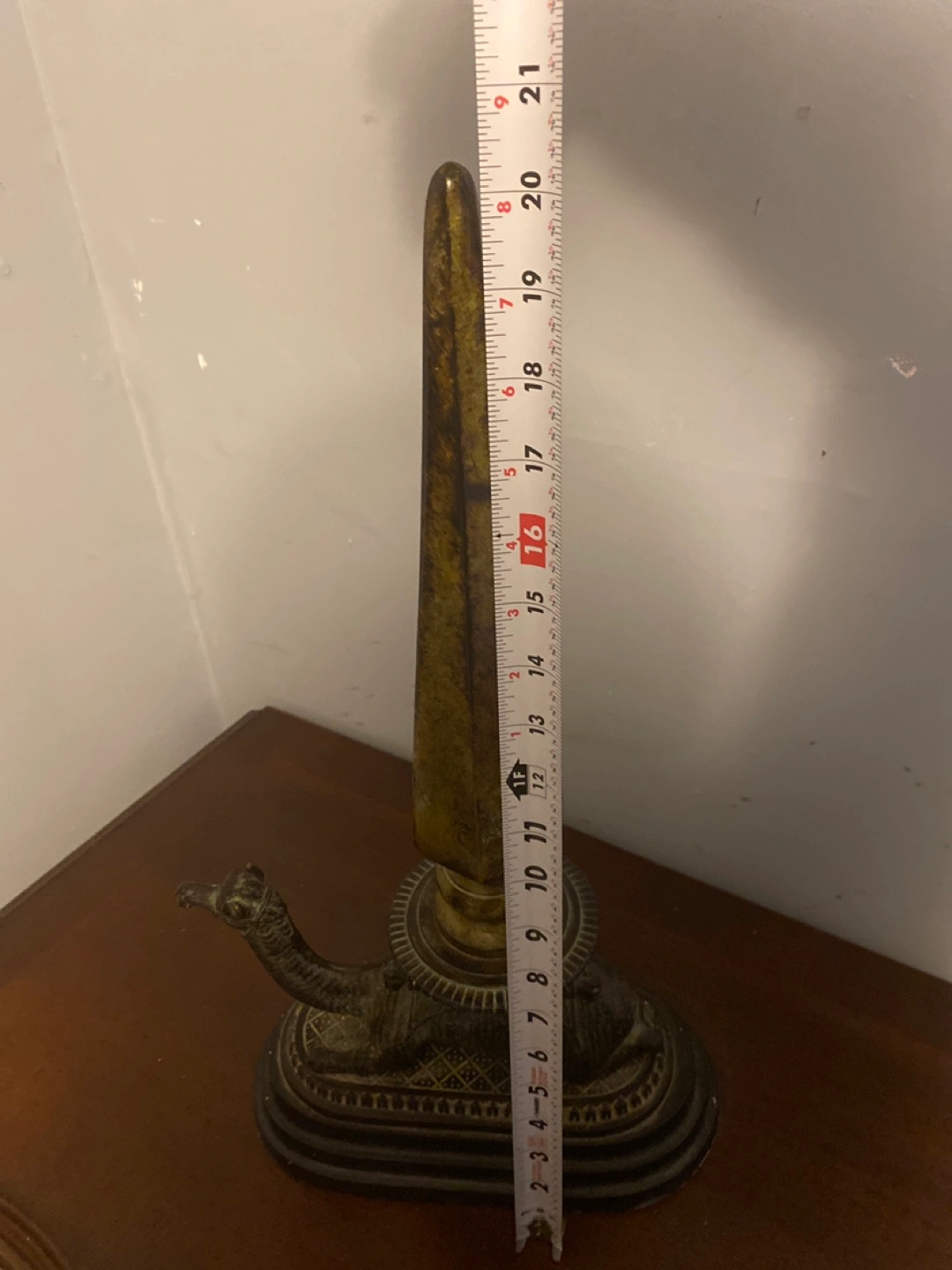 Unique vintage home decor Features a camel design. Brass construction. Measures approximately 16 inches tall.