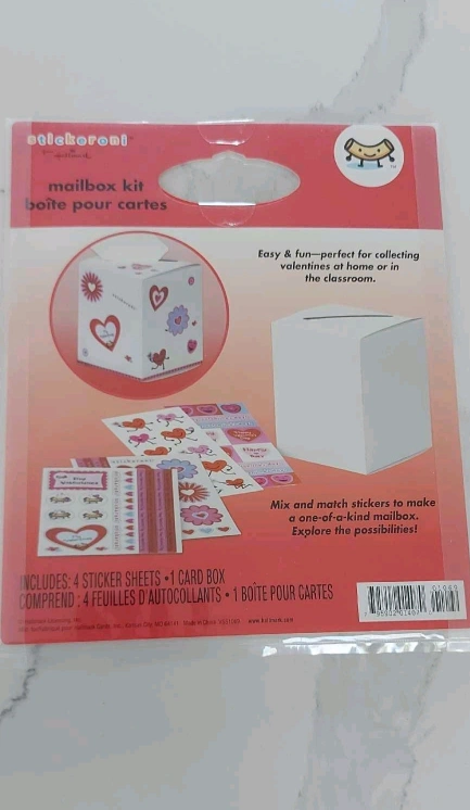 Valentine's mailbox kit. Includes four sticker sheets and one card box. Easy and fun for collecting valentines at home or in the classroom.