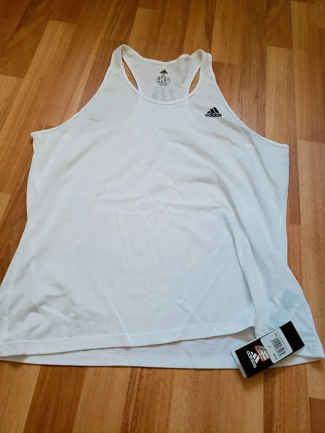 Brand new with tags. White Adidas racerback tank top. Size extra-large. Perfect for workouts or casual wear. Lightweight and breathable fabric.