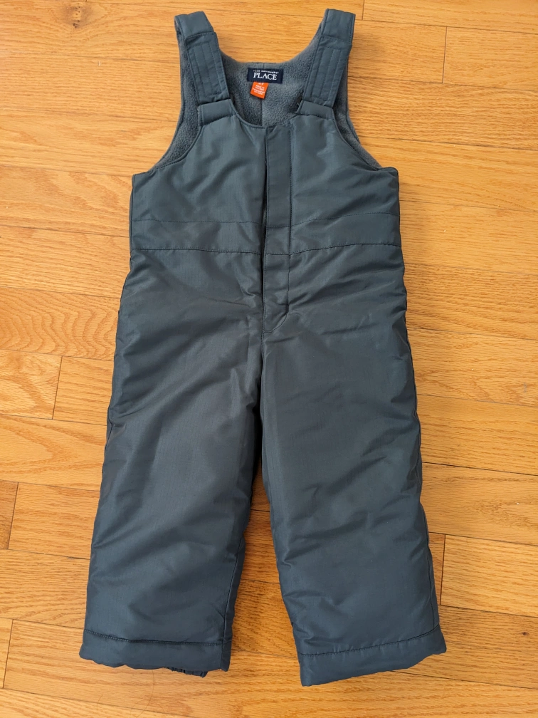 Dark grey snow pants. Size 2T. Fleece lined. Adjustable straps.