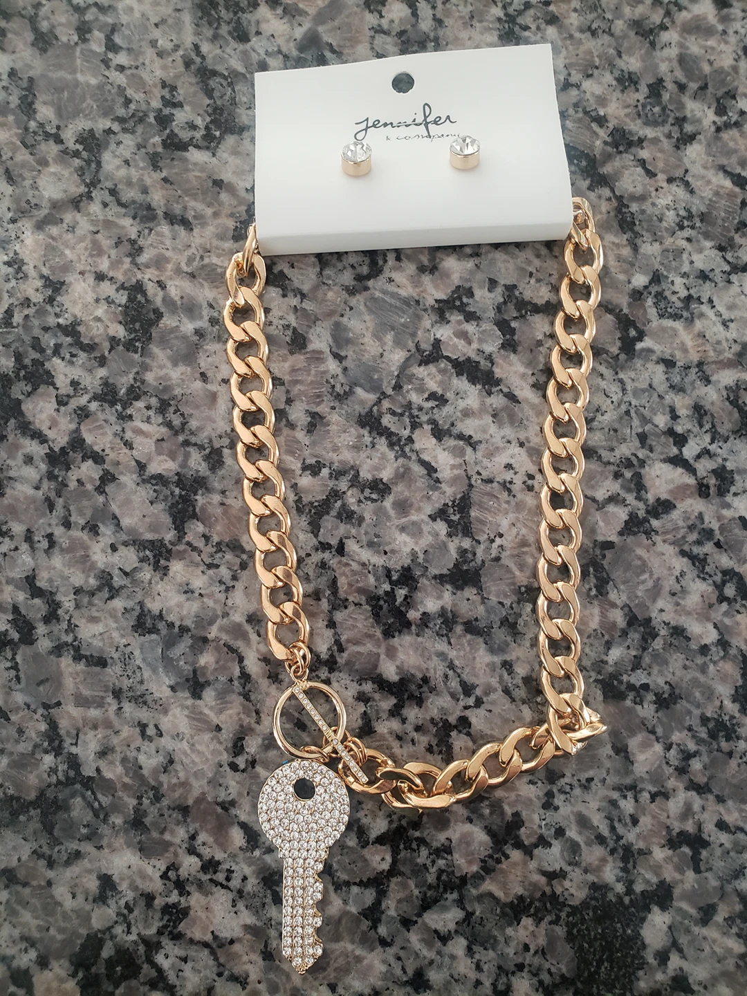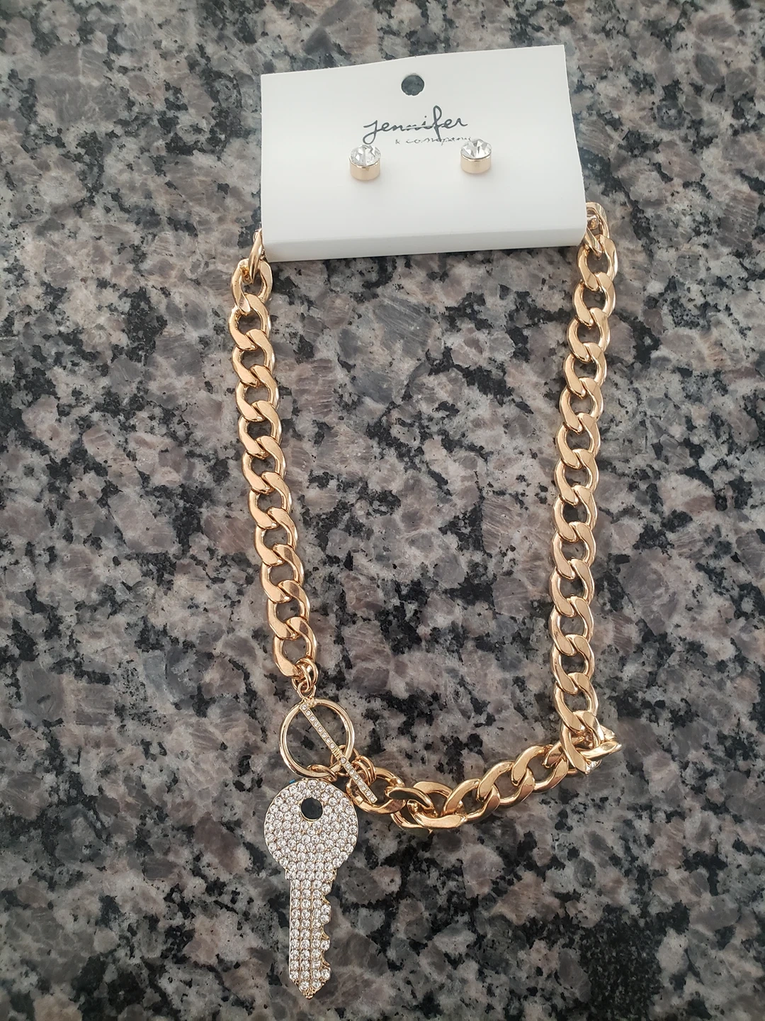 Brand new, never used, set of earrings and choker necklace with key pendant. Pick up 3975 Grand Park Drive. Thank you!