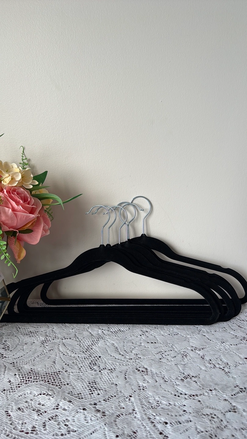 MEETING LOCATION: Scarborough Town Centre Mall only Evenings (preferably), cash payment BLACK VELVET HANGERS: SOFT BUT DURABLE!! ***6 hangers for $5.00 ***Durable and functional ***Grooves on each shoulder to hold delicate items with thin straps in place! ***A metal hook with a 360 degree swivel ***Ultra-slim hangers take minimal space in the closet! ***Condition: Excellent!
