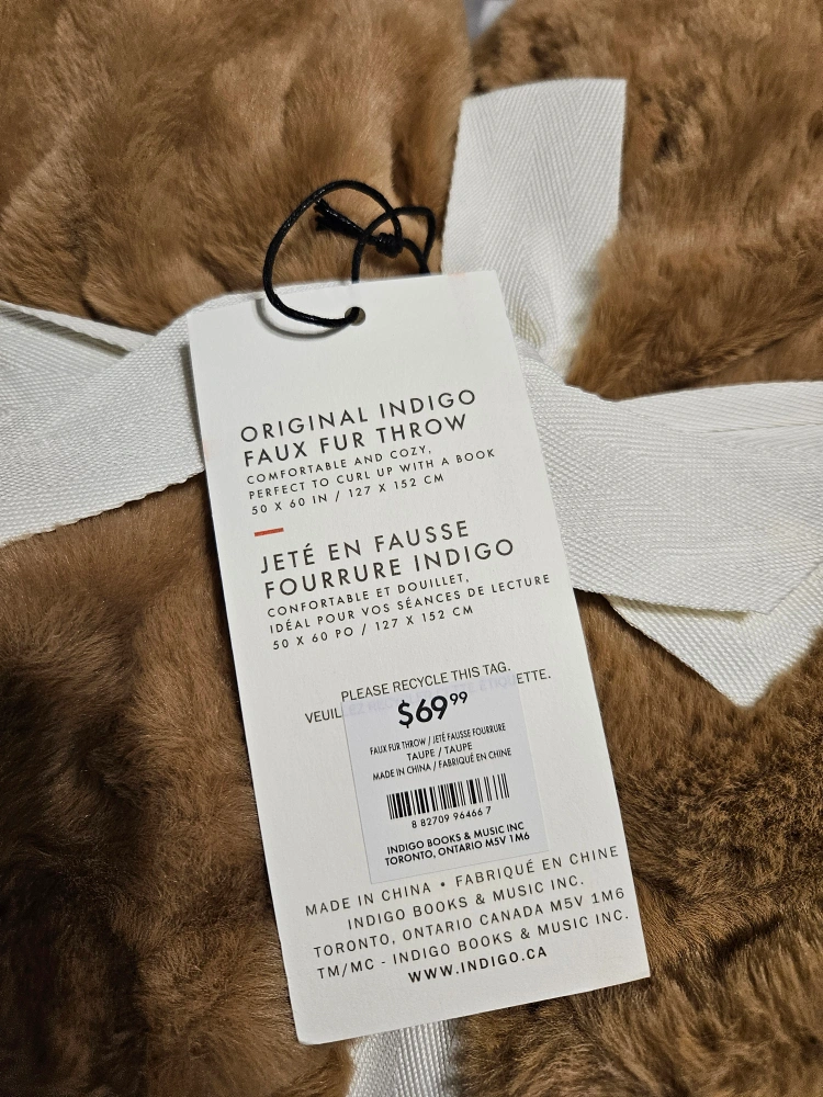 BNIP brown throw Faux fur throw 127x 152 cm