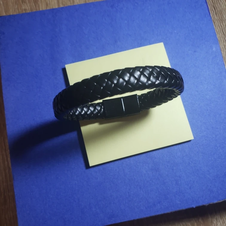 Braided black leather bracelet. Magnetic clasp closure. Stylish and simple design. Perfect for everyday wear. #KarrotSuperbowl
