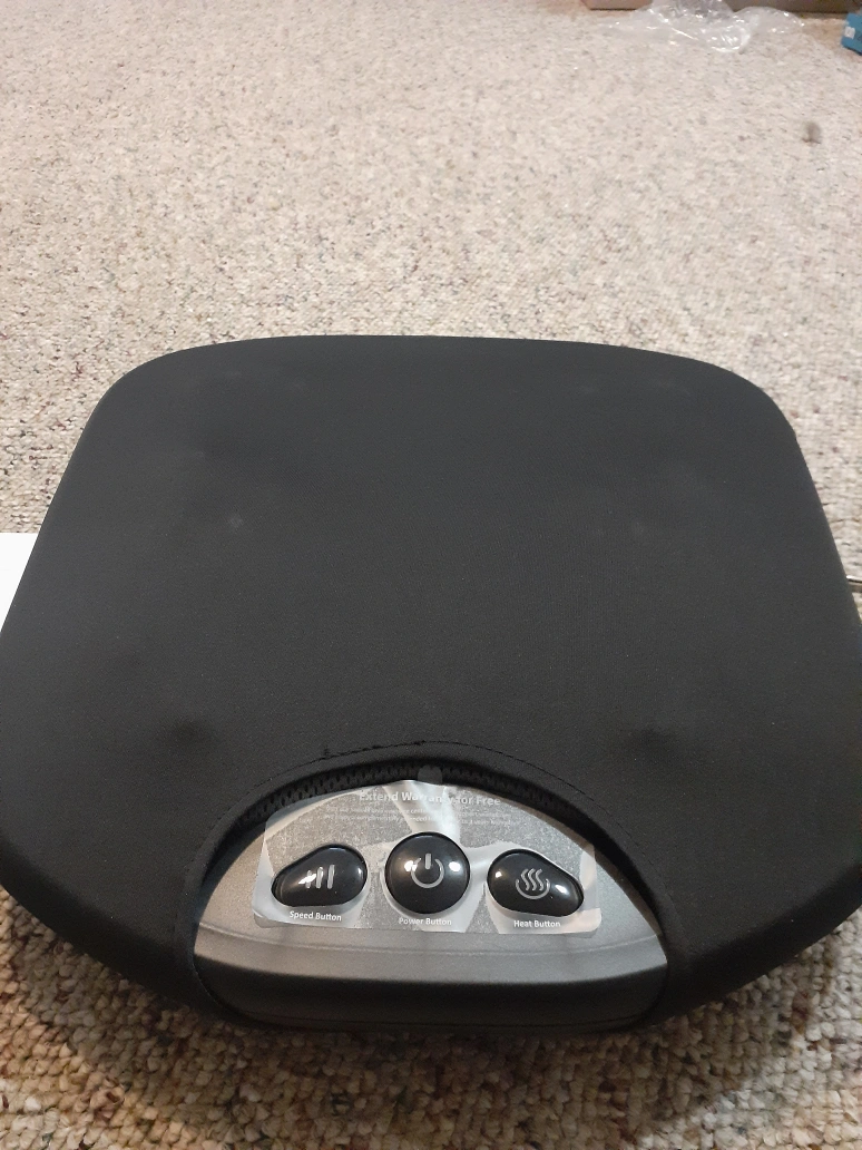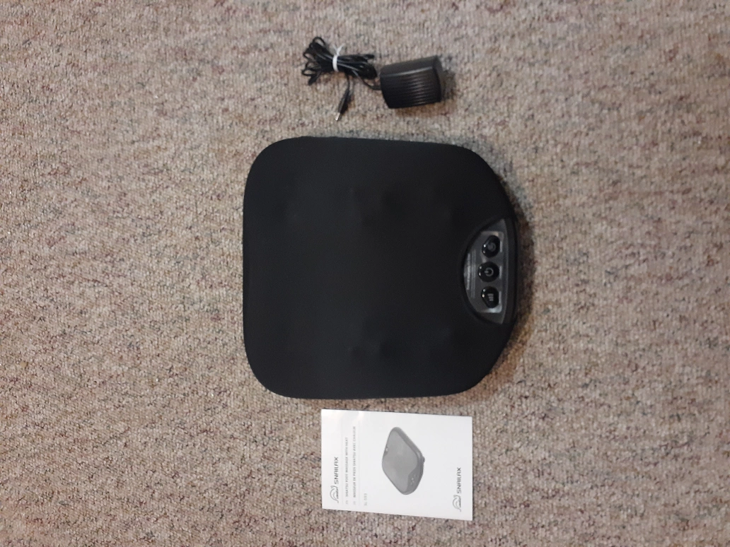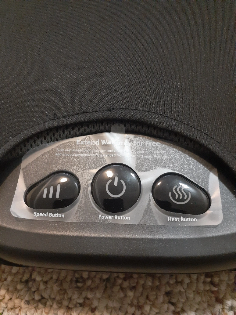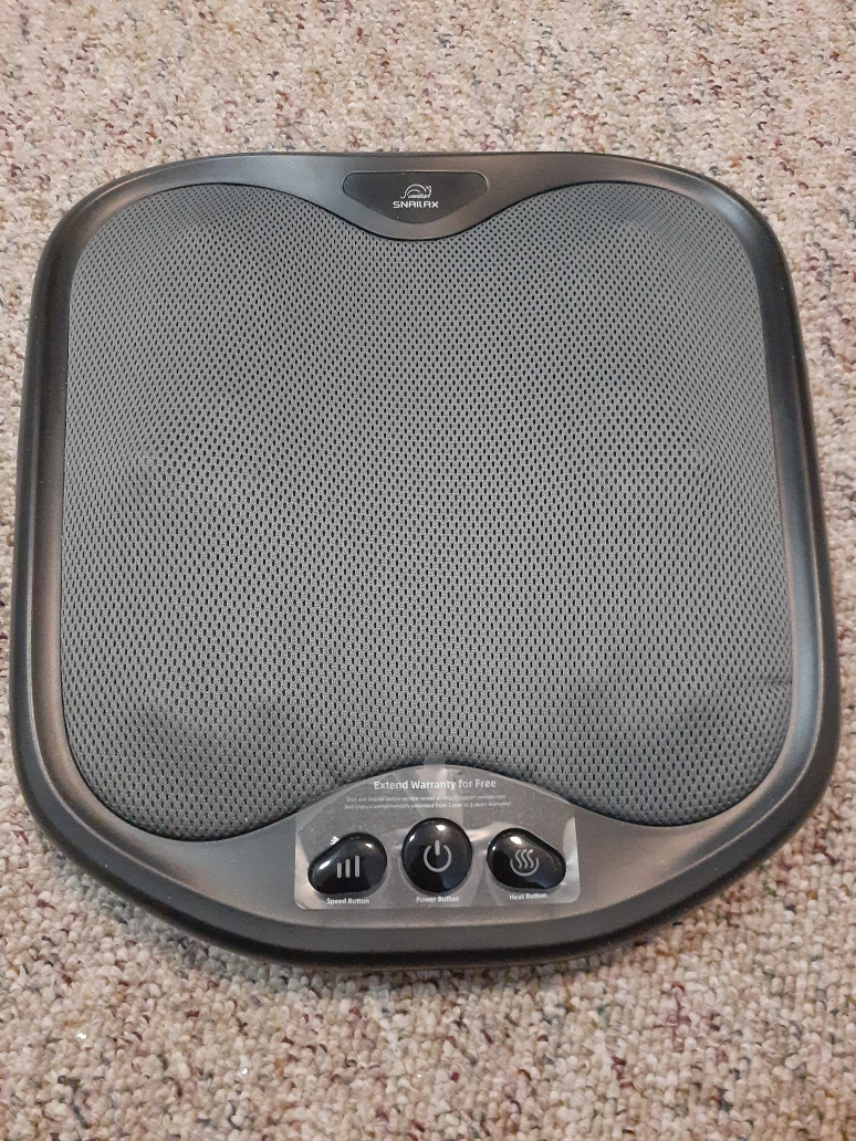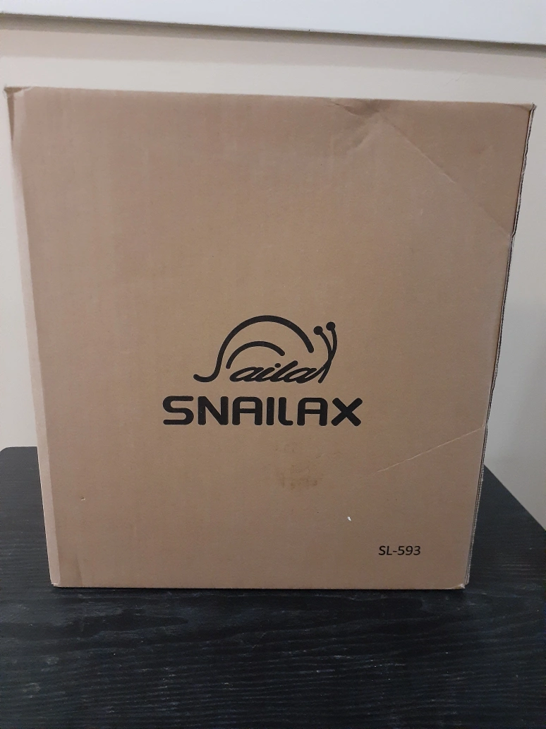 New, unused SNAILAX SL-593 shiatsu foot & back massager. Includes power adapter and instruction manual. Features heat and speed settings. Compact and portable design.