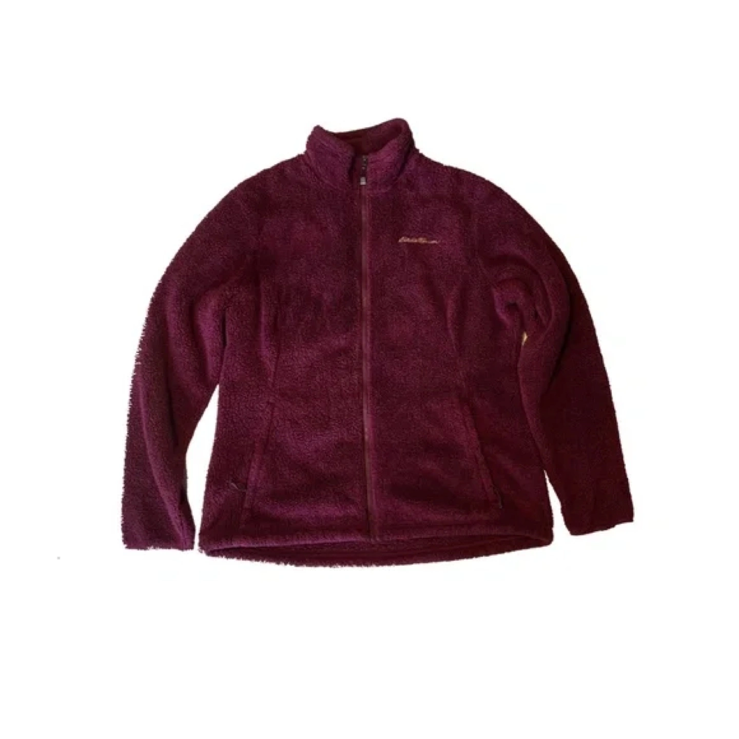 Women's full-zip fleece jacket. Burgundy colour. Soft and cozy. Great for layering. Eddie Bauer Fleece Zip-Up Sweater Purple Size: L Used (Great Condition) Flat Measurements: Pit to Bottom 17โ Pit to Pit 22.5โ Length 28โ Arm Length 25" Cash McNicoll & Midland Area Pickup (3720 Midland Avenue, Toronto, CA M1V 4V3) Pet & Smoke Free Home ๐ก Sanitized and Cleaned Thoroughly ๐งบ Bundle to Save Up to 15% ๐ Offers and Questions are Welcome ๐