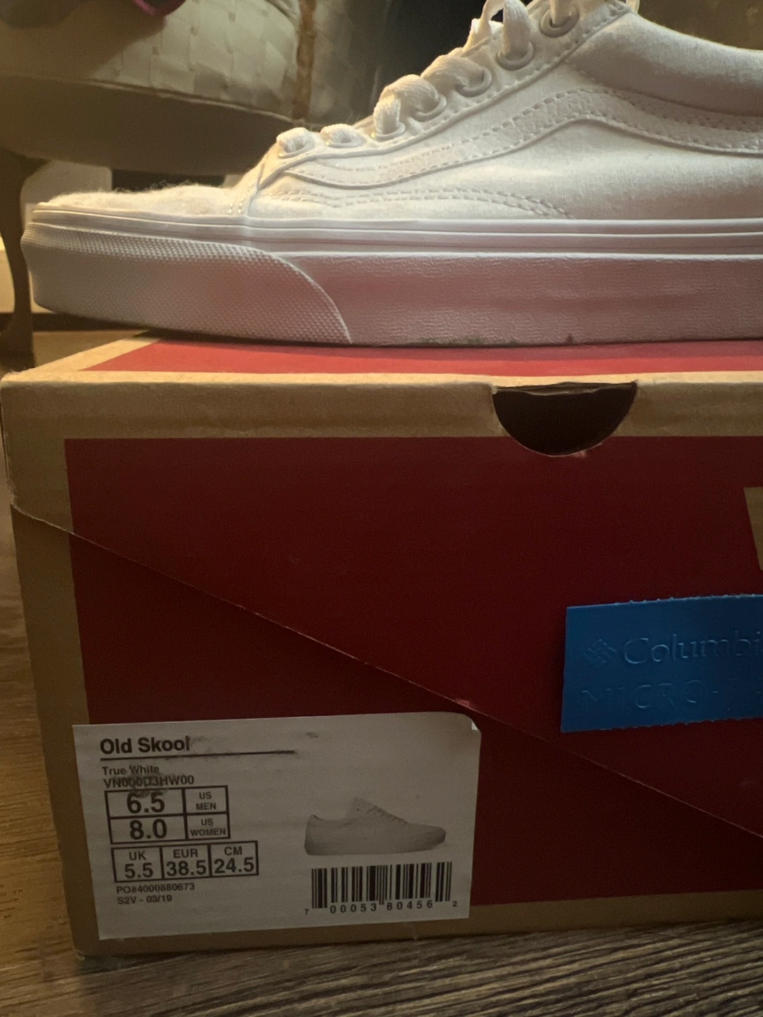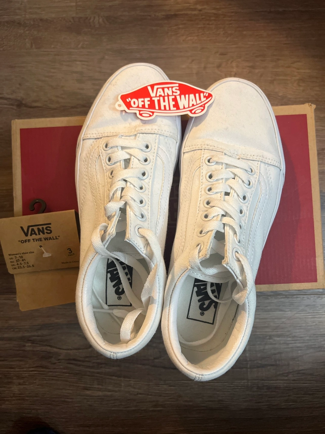 Old Skool True White No flaws A little dusty only Ready to wear Accepting cash only No overuse of shoes Almost new
