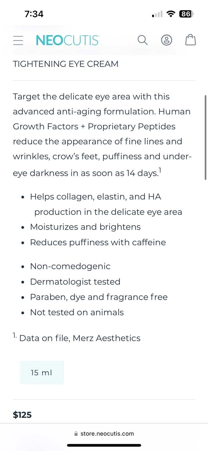 Extra moisturizing, illuminating & tightening eye cream. 15 ml. Paraben, dye and fragrance free. Not tested on animals.