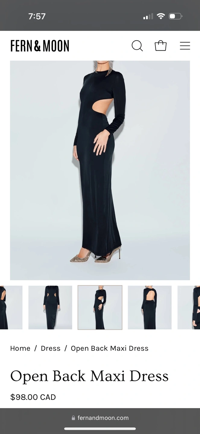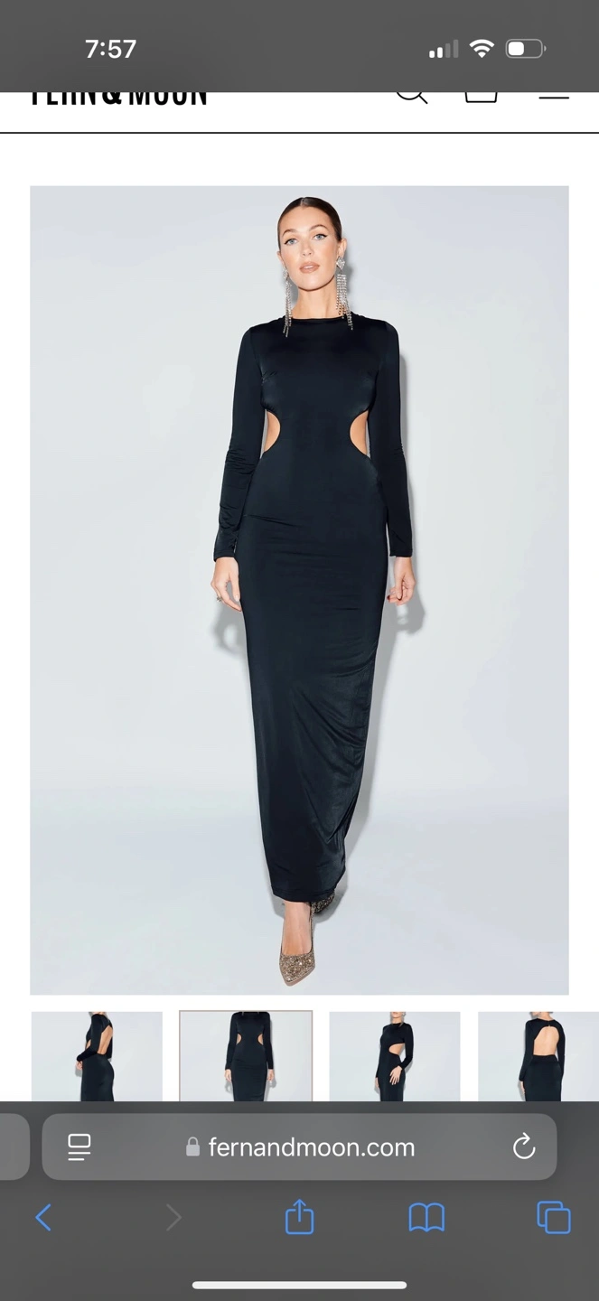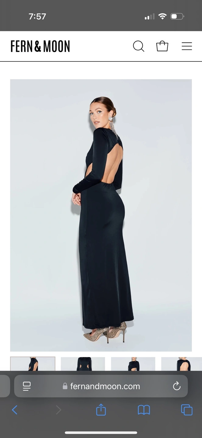 Stunning black maxi dress. Open back detail. Long sleeves. Floor-length. Perfect for a special occasion. Worn & washed once. Retail price: $98 https://fernandmoon.com/products/open-back-midi-dress