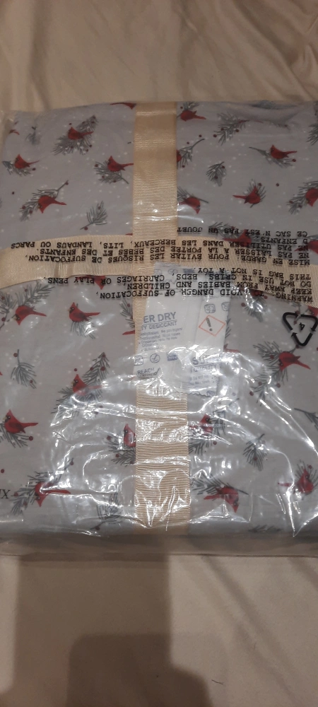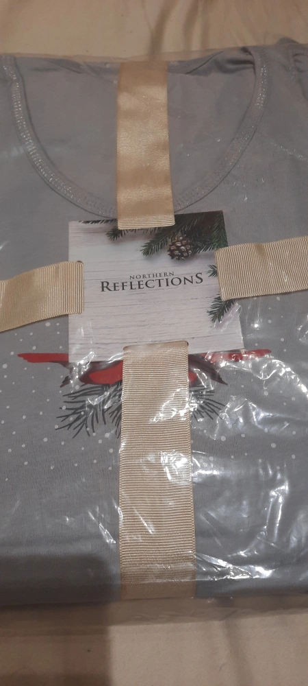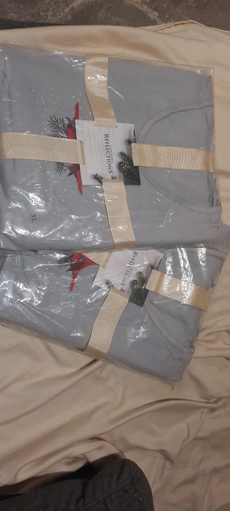 New with tags. Long-sleeved top and pajama pants. Grey with red cardinal print.I managed to get a whole bunch of Northern These are Brand New still sealed. They come with the top and pants! I have 3 sizes, Medium, Large and X-Large... They range in price from $25 on sale to normally $45... I'm looking for $10 per pair! https://www.northernreflections.com/apparel/sleepwear/